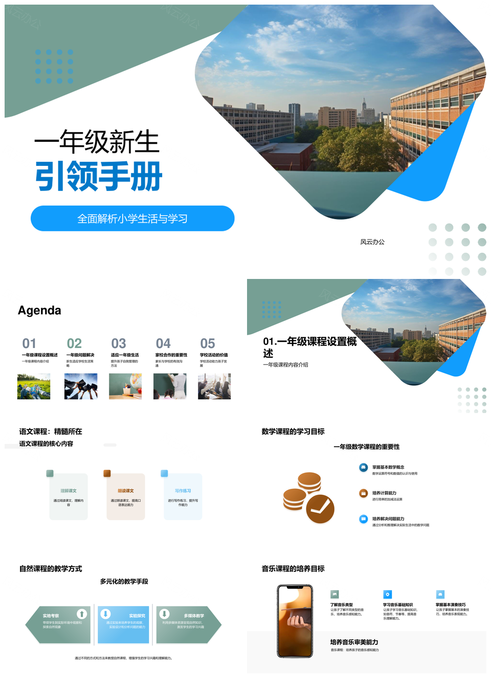 一年级新生学习生活学科课程校园指南PPT模板推荐