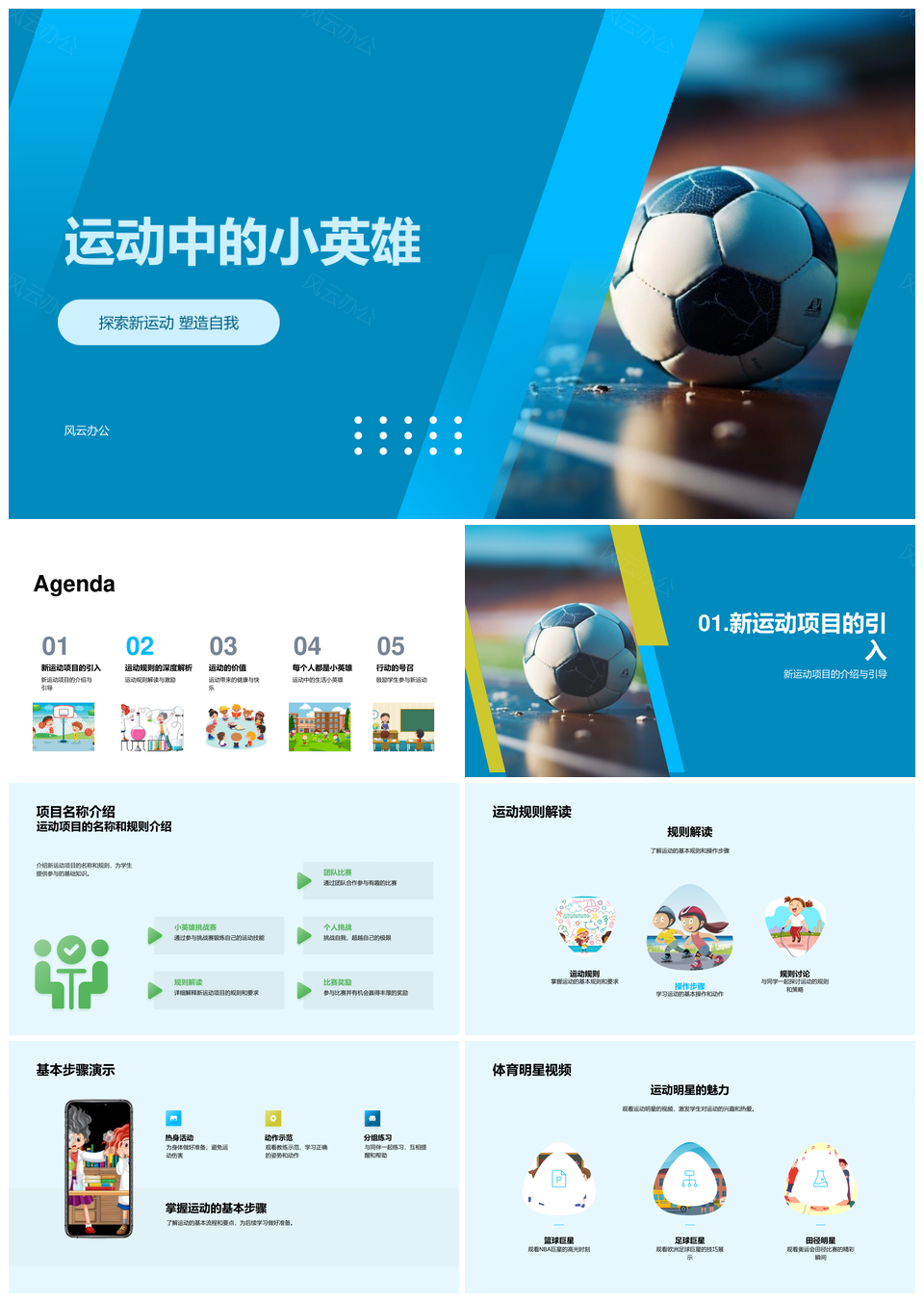 风云办公提供的四年级足球新课体育小将教学规则PPT模板,下载格式为pptx,一共22页,作品中文字及图均可以修改和编辑,图片更改请在作品中右键图片并更换,文字修改请直接点击文字进行修改。