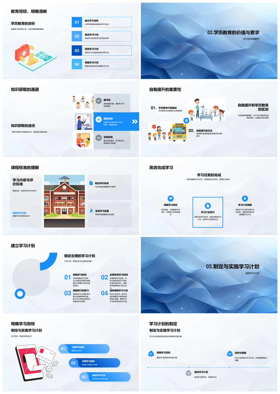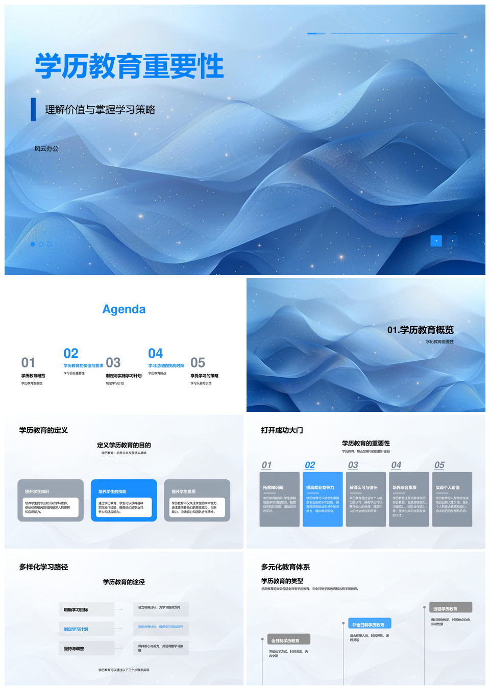 风云办公提供的学历教育价值与学习策略目标规划PPT模板,下载格式为pptx,一共33页,作品中文字及图均可以修改和编辑,图片更改请在作品中右键图片并更换,文字修改请直接点击文字进行修改。