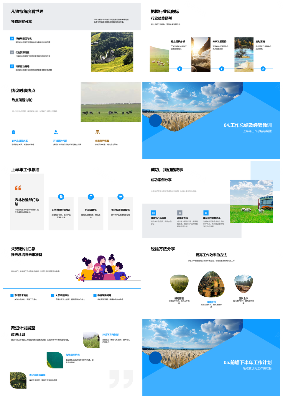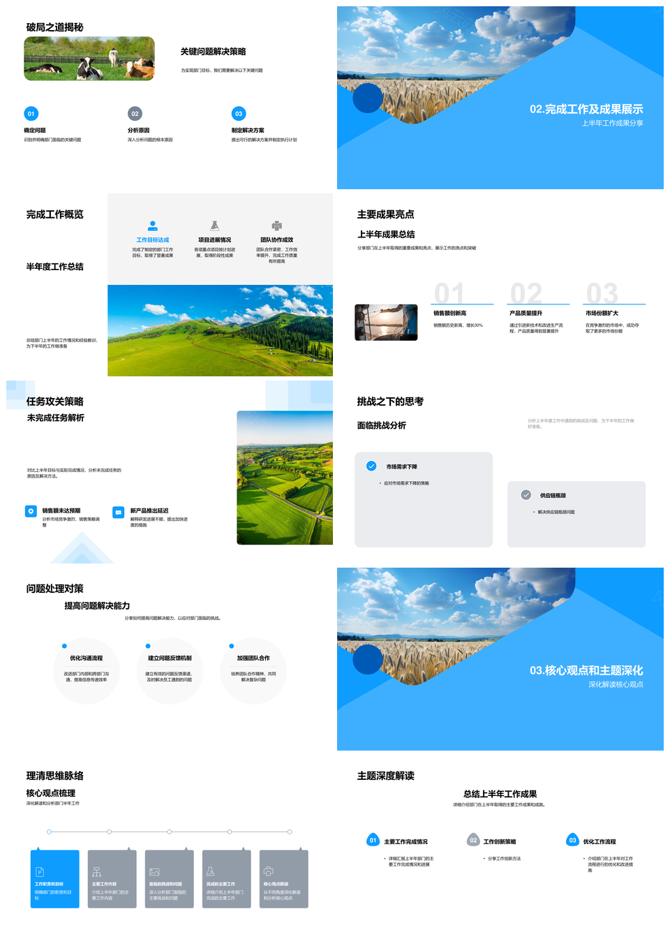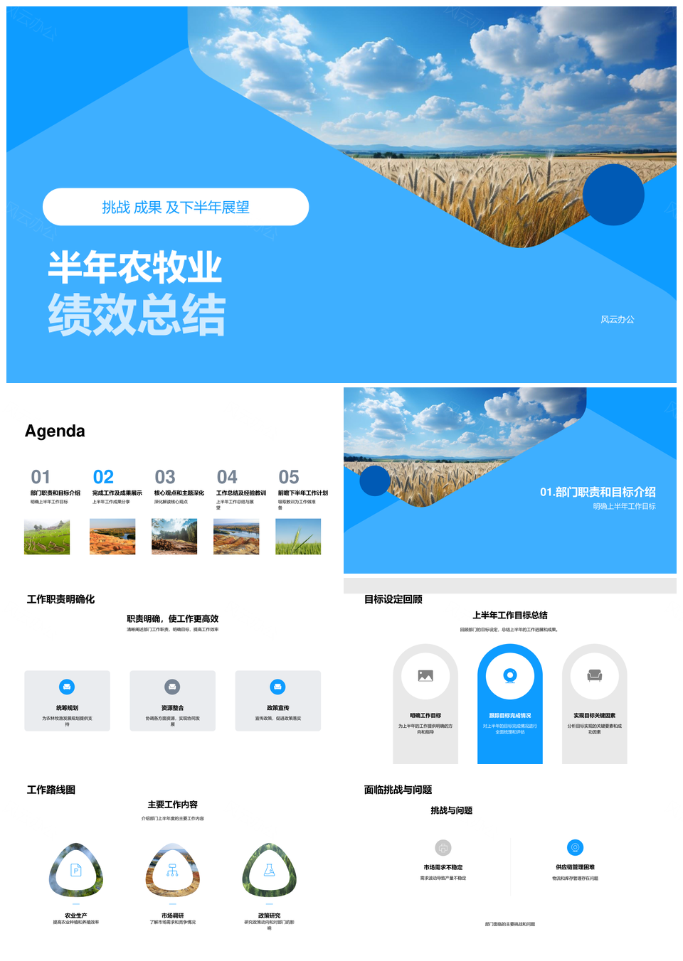 风云办公提供的农牧业半年绩效挑战成果展望总结PPT模板,下载格式为pptx,一共33页,作品中文字及图均可以修改和编辑,图片更改请在作品中右键图片并更换,文字修改请直接点击文字进行修改。
