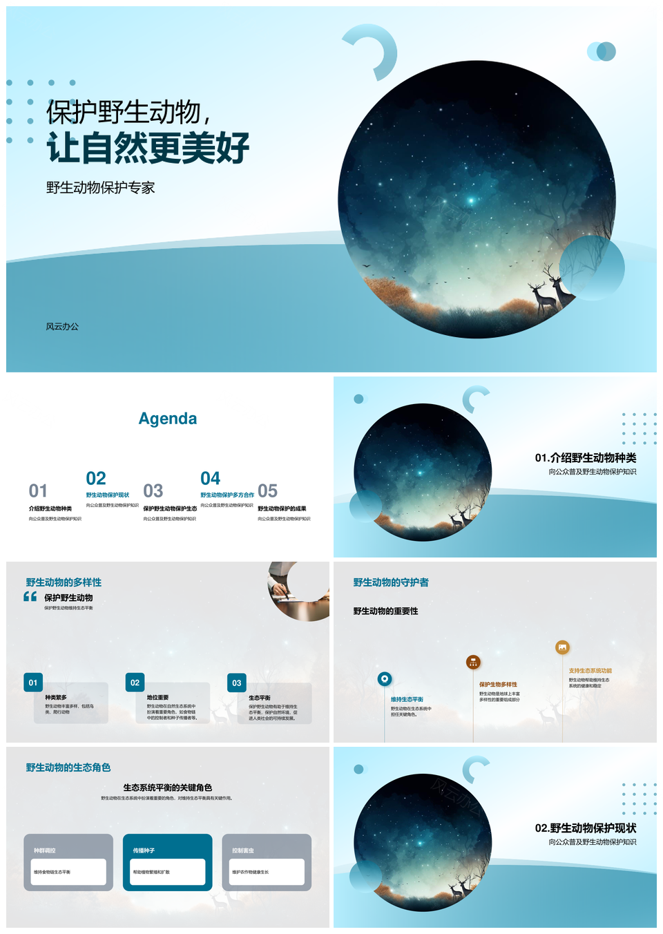 风云办公提供的保护野生动物维系生态多样全民科普PPT模板,下载格式为pptx,一共22页,作品中文字及图均可以修改和编辑,图片更改请在作品中右键图片并更换,文字修改请直接点击文字进行修改。