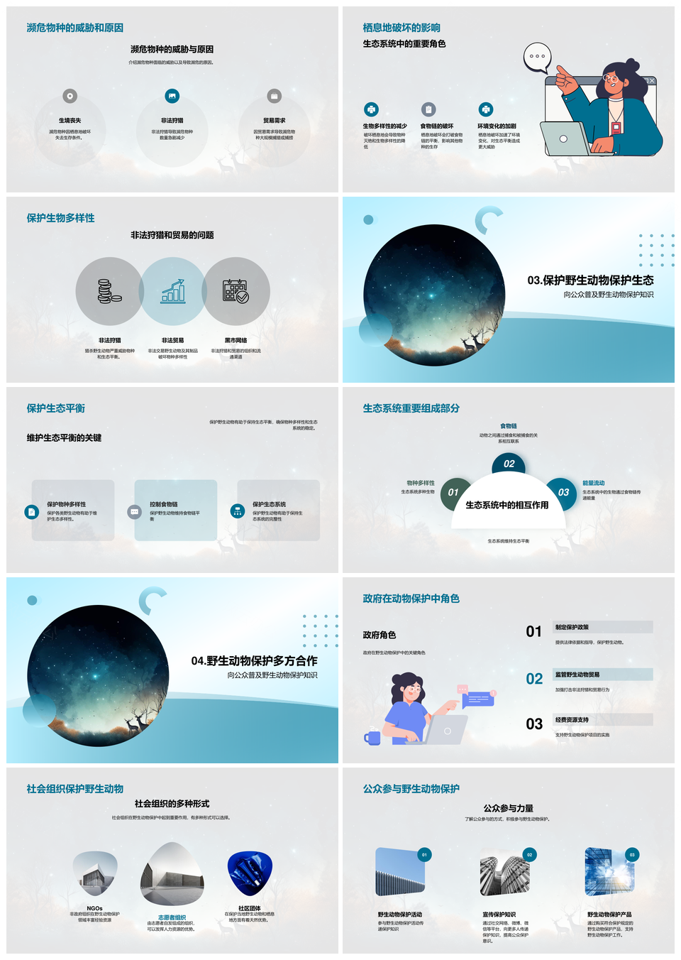 这是一张保护野生动物维系生态多样全民科普PPT模板,包含保护、野生动物、维系、生态多样、全民、科普等主题内容,也可用作保护野生动物维系生态、保护野生动物生态多样、保护维系生态多样、维系生态多样全民、生态多样全民科普、保护野生动物维系、保护野生动物生态、保护维系生态、维系生态多样、生态多样全民、多样全民科普、保护生态多样、维系生态全民、生态全民科普、全民科普保护等PPT场景使用。
