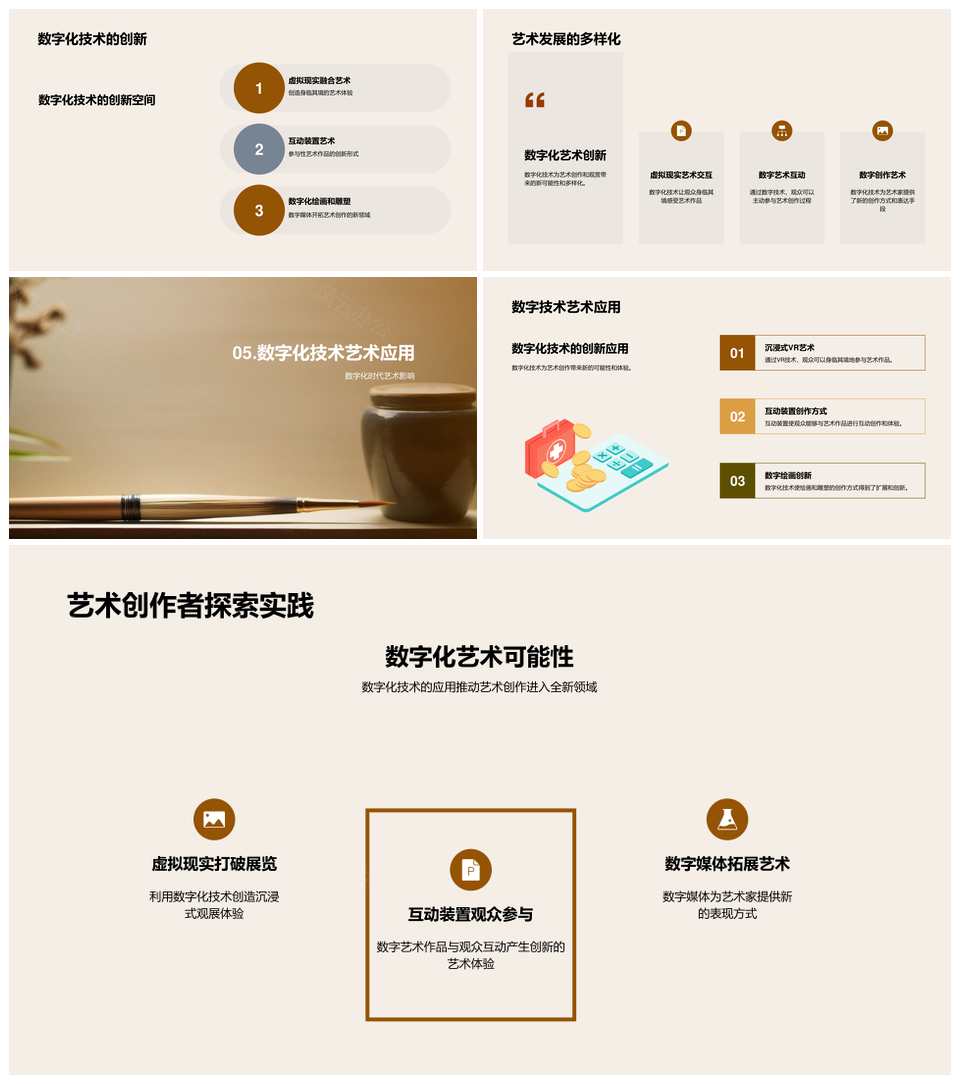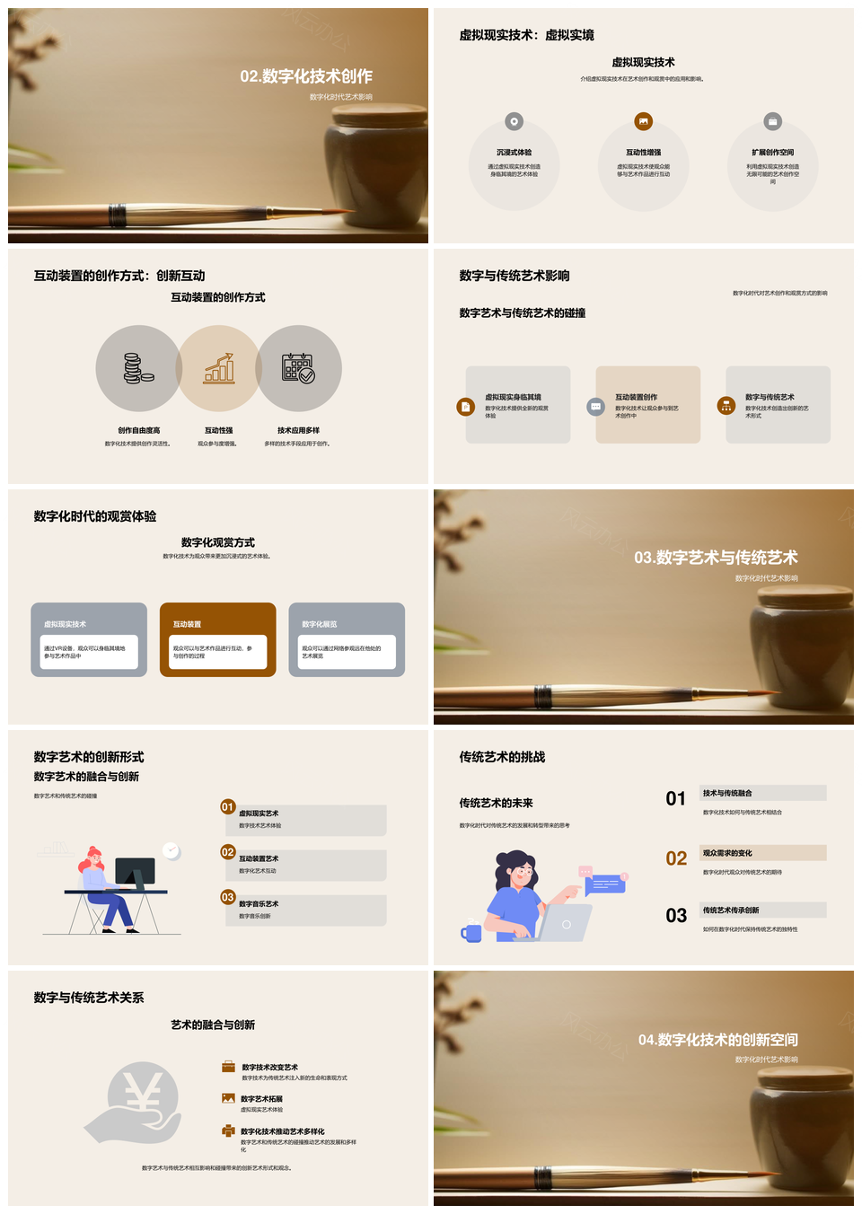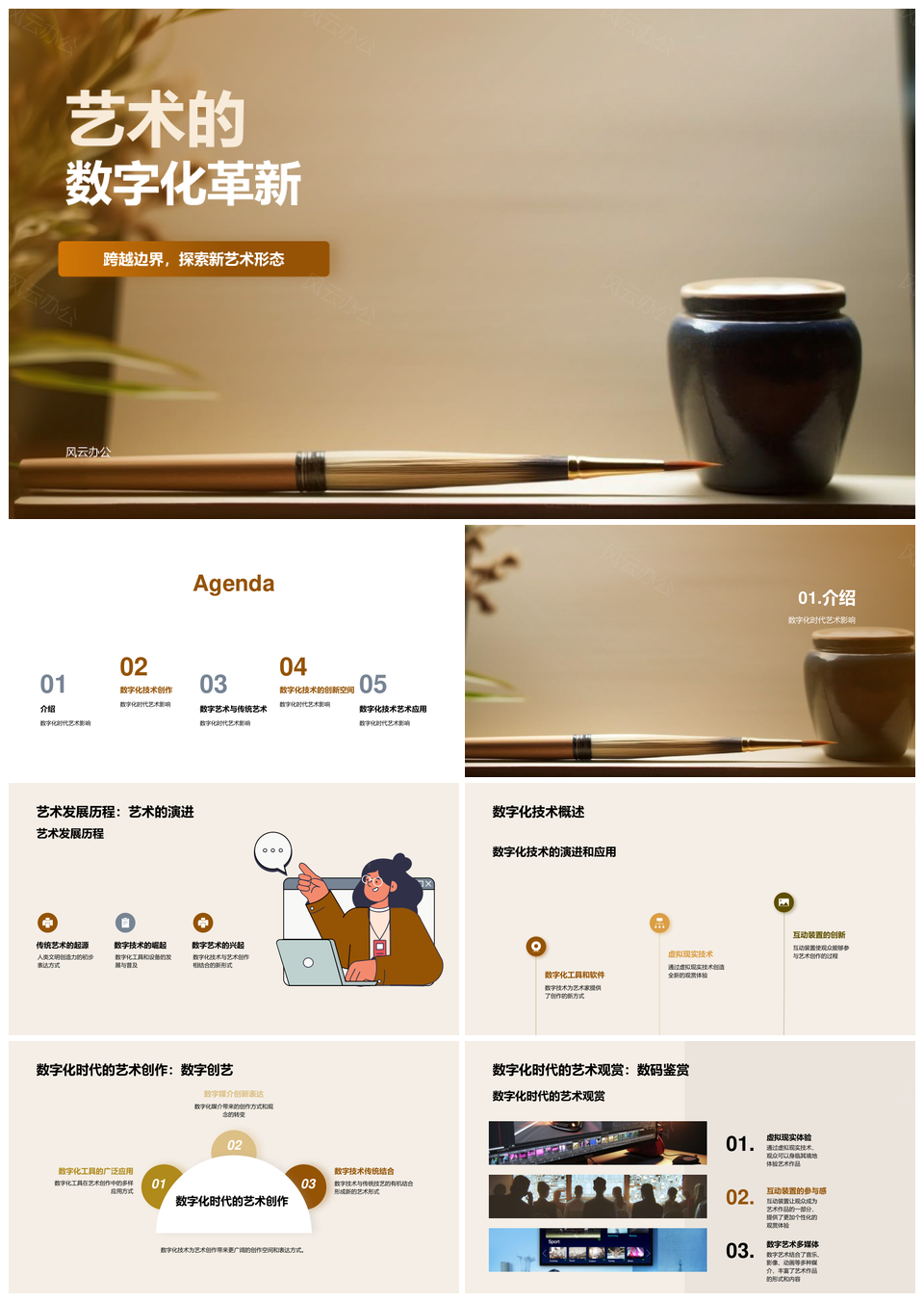 风云办公提供的数字艺术与传统碰撞时代革新PPT模板,下载格式为pptx,一共23页,作品中文字及图均可以修改和编辑,图片更改请在作品中右键图片并更换,文字修改请直接点击文字进行修改。
