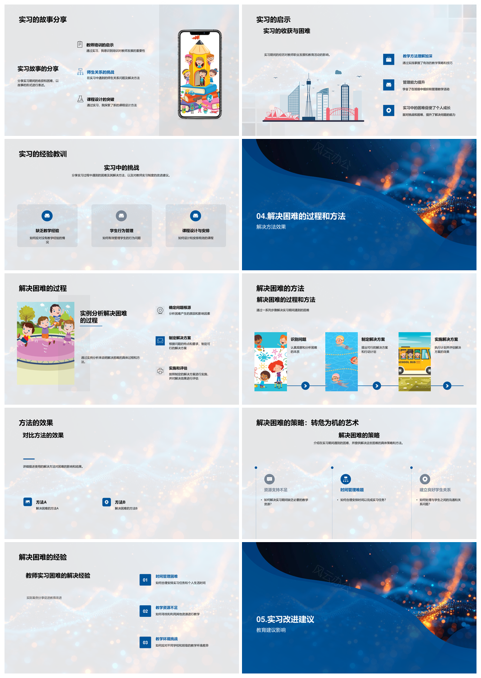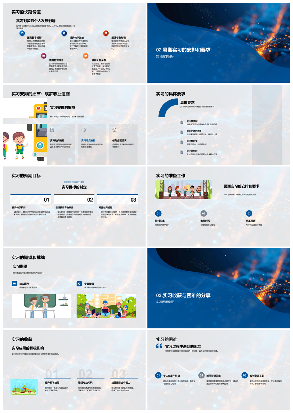 这是一张教师暑期实习经验制度改进职业发展报告PPT模板,包含教师、暑期、实习、经验、制度、改进、职业、发展、报告等主题内容,也可用作教师暑期实习经验制度改进、教师暑期实习经验制度、暑期实习经验制度改进、教师暑期实习经验、暑期实习经验制度、实习经验制度改进、制度改进职业发展、教师暑期实习、暑期实习经验、实习经验制度、改进职业发展、职业发展报告、教师实习、制度改进、职业发展等PPT场景使用。 风云办公提供的教师暑期实习经验制度改进职业发展报告PPT模板,下载格式为pptx,一共33页,作品中文字及图均可以修改和编辑,图片更改请在作品中右键图片并更换,文字修改请直接点击文字进行修改。