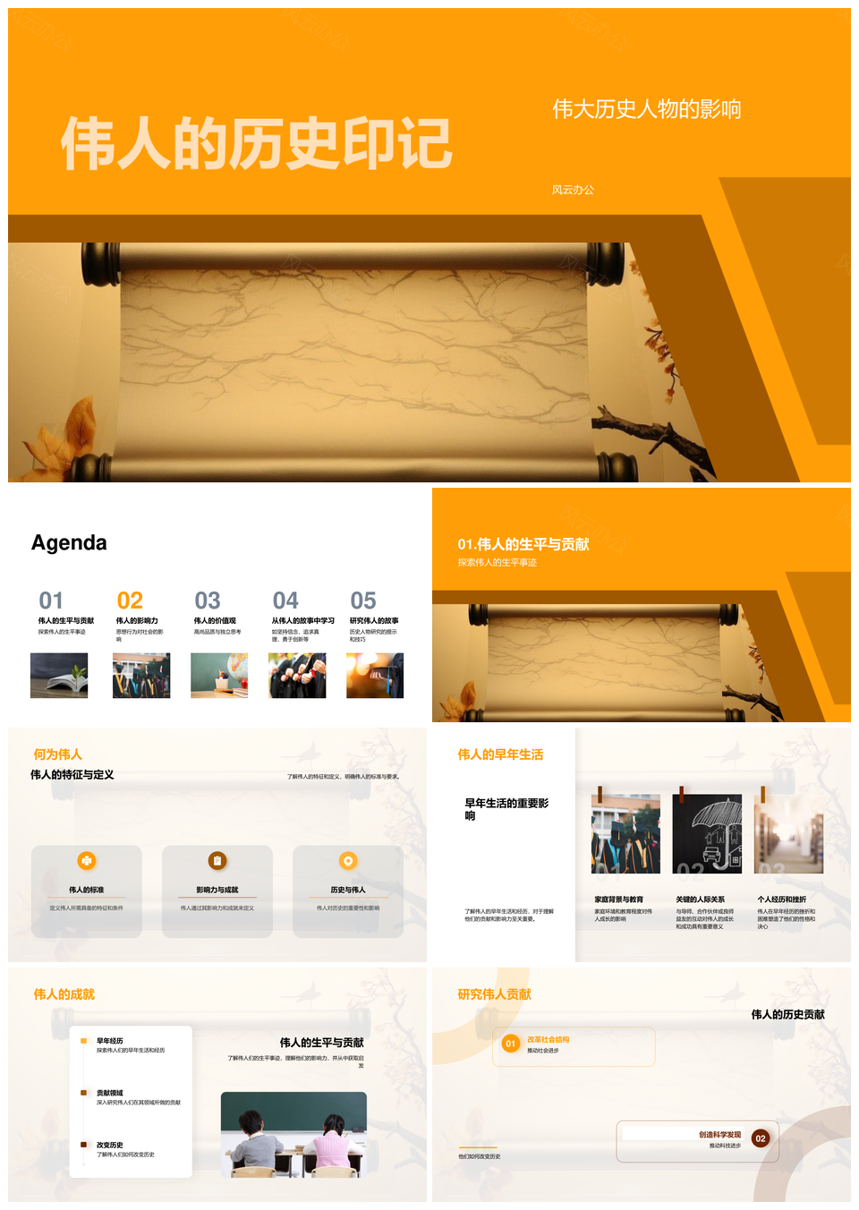 风云办公提供的伟人历史贡献与高尚品质卷轴PPT模板,下载格式为pptx,一共28页,作品中文字及图均可以修改和编辑,图片更改请在作品中右键图片并更换,文字修改请直接点击文字进行修改。