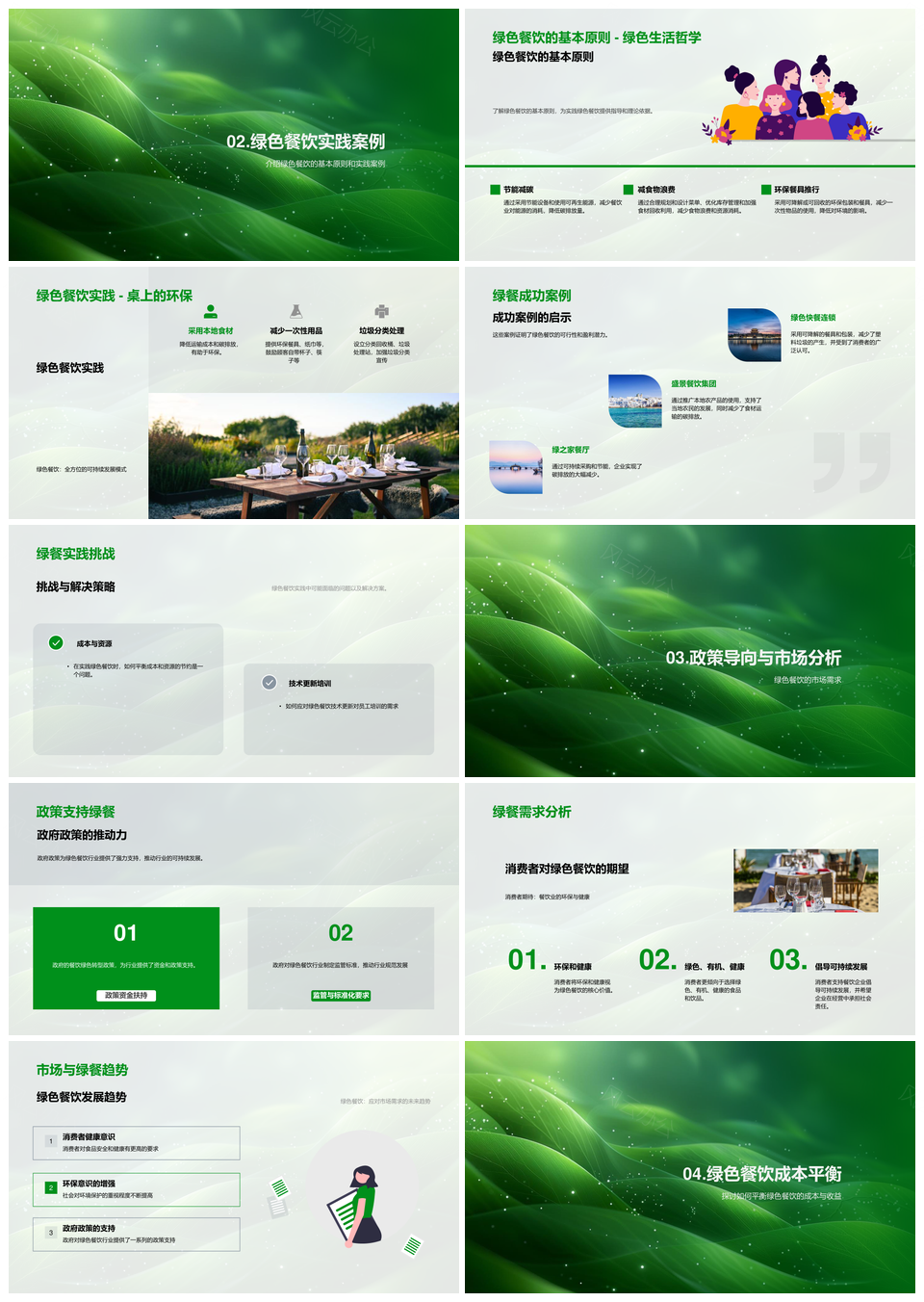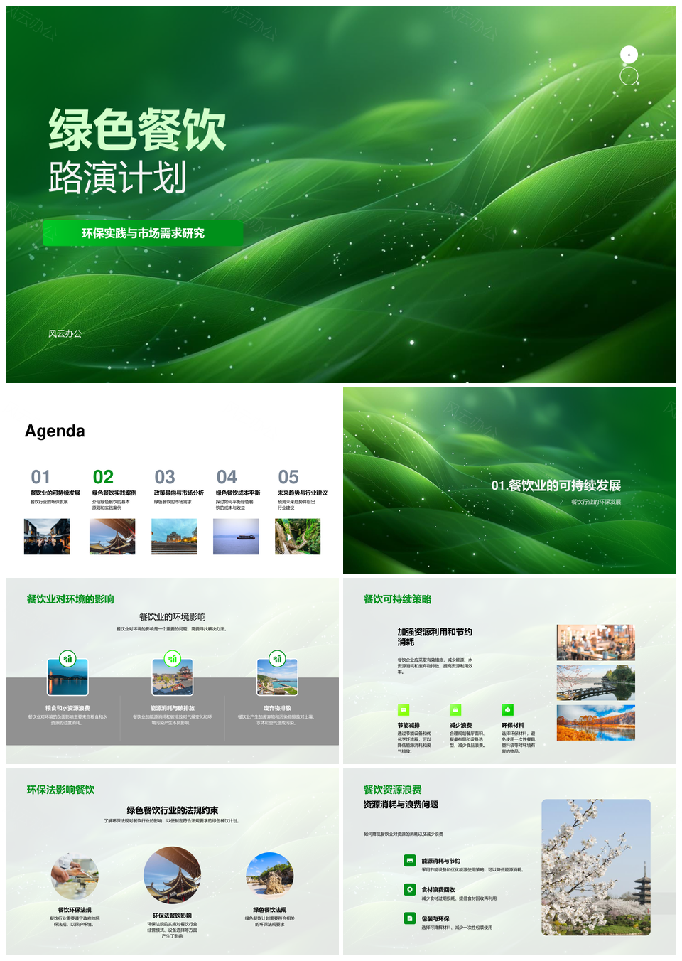 绿色餐饮可持续发展政策资源市场路演计划PPT模板推荐