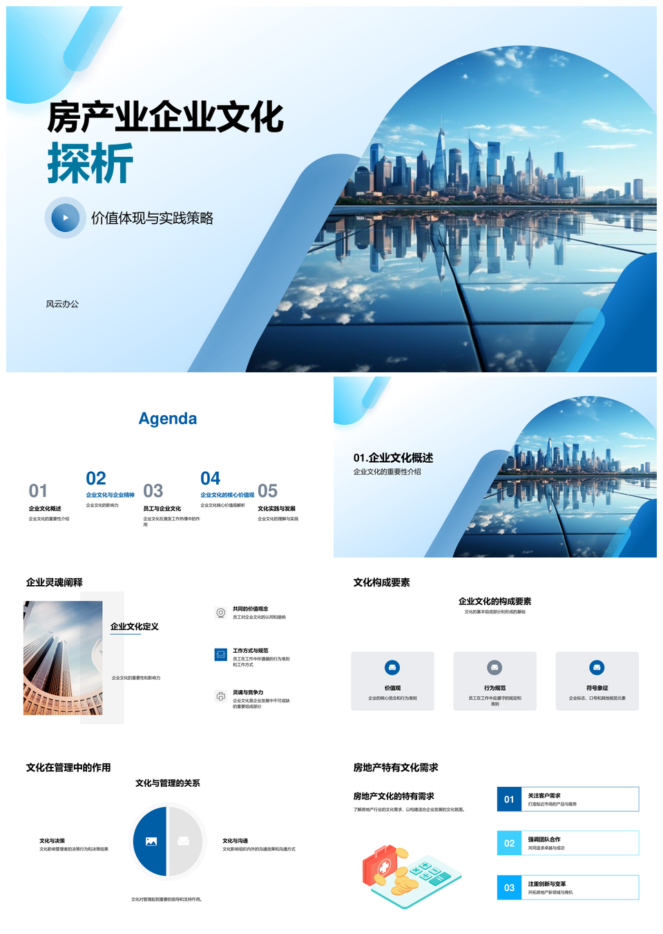风云办公提供的房产业企业文化摩天大楼价值实践策略PPT模板,下载格式为pptx,一共28页,作品中文字及图均可以修改和编辑,图片更改请在作品中右键图片并更换,文字修改请直接点击文字进行修改。