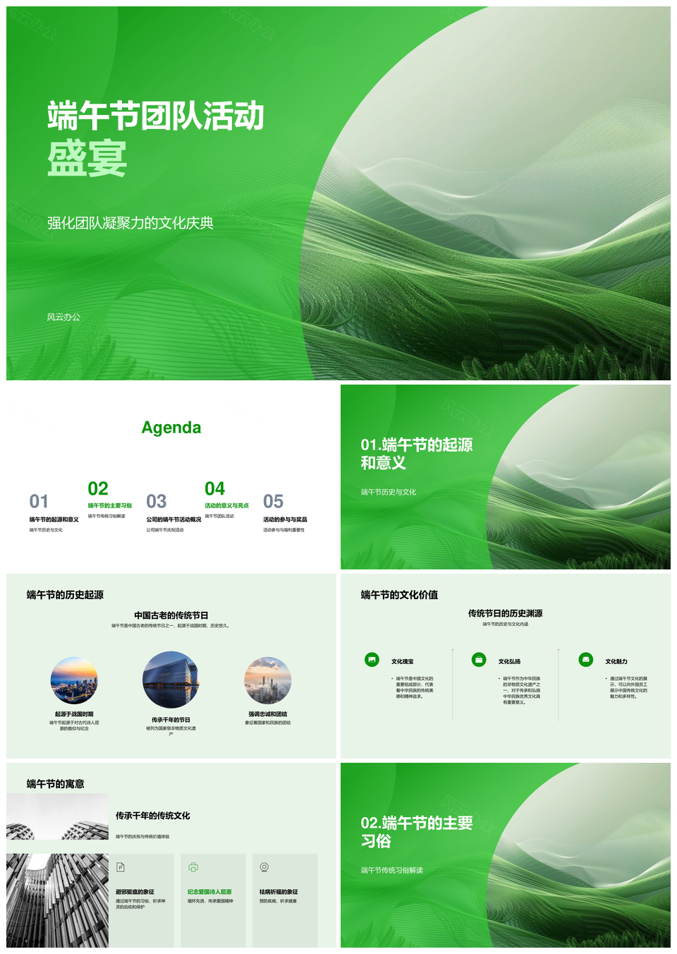 风云办公提供的企业端午团队活动传统文化粽艺庆典PPT模板,下载格式为pptx,一共23页,作品中文字及图均可以修改和编辑,图片更改请在作品中右键图片并更换,文字修改请直接点击文字进行修改。