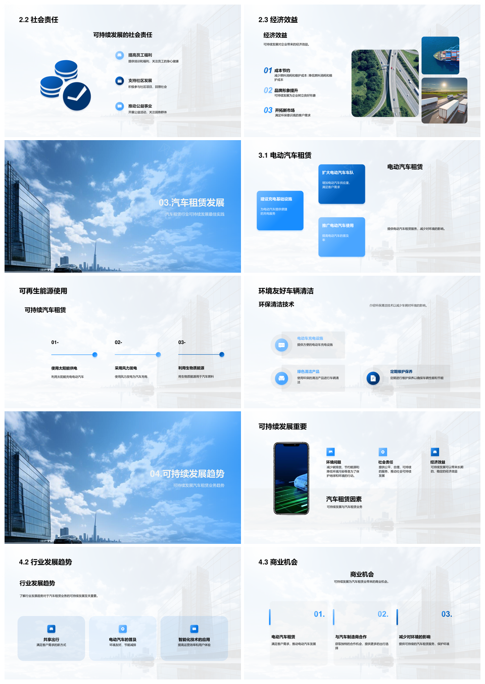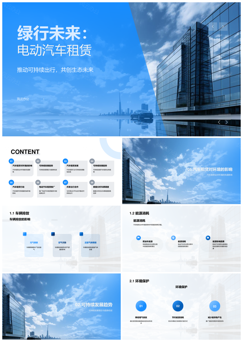 风云办公提供的电动汽车租赁助环保减排可持续发展PPT模板,下载格式为pptx,一共34页,作品中文字及图均可以修改和编辑,图片更改请在作品中右键图片并更换,文字修改请直接点击文字进行修改。