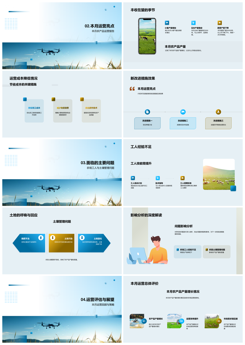 麦田农业运营月度活动成效产量分析PPT模板