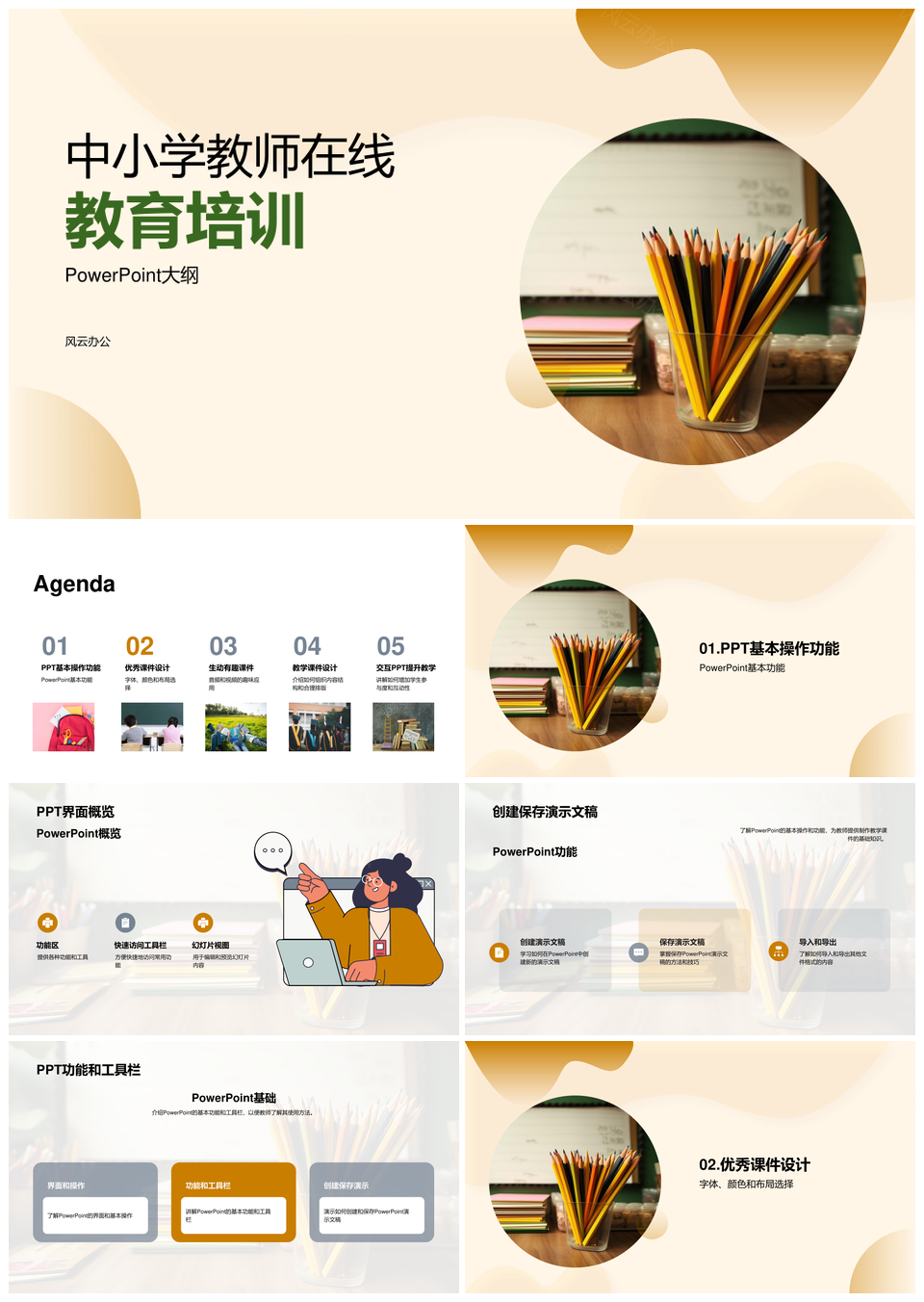 风云办公提供的中小学教师在线教学课件操作培训PPT模板,下载格式为pptx,一共23页,作品中文字及图均可以修改和编辑,图片更改请在作品中右键图片并更换,文字修改请直接点击文字进行修改。