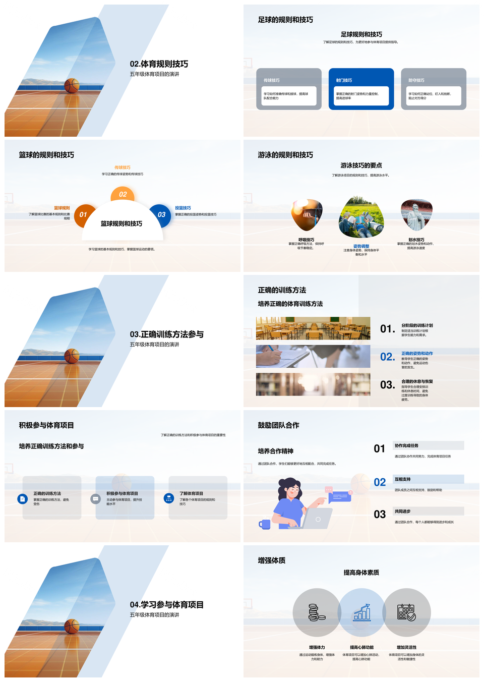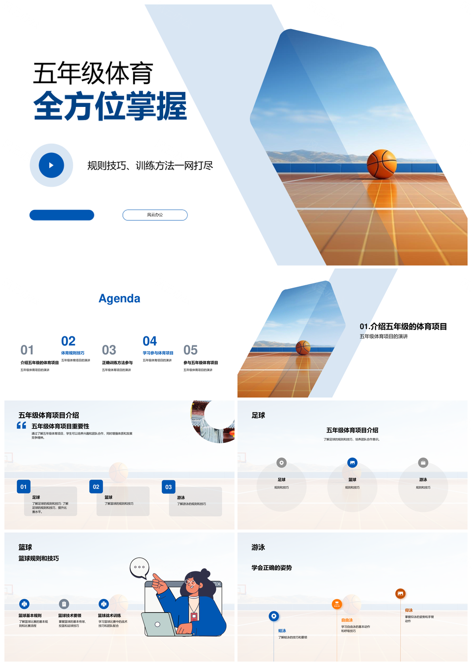 这是一张五年级体育课足球篮球游泳兴趣合作PPT模板,包含五年级、体育课、足球、篮球、游泳、兴趣、合作等主题内容,也可用作五年级体育课足球篮球游泳、五年级体育课足球篮球、五年级体育课游泳合作、体育课足球篮球游泳、足球篮球游泳兴趣合作、五年级足球篮球游泳、体育课游泳兴趣合作、五年级体育课游泳、五年级游泳兴趣合作、篮球游泳兴趣合作、五年级篮球游泳兴趣、体育课足球篮球、足球篮球游泳、体育课兴趣合作、足球篮球兴趣合作等PPT场景使用。