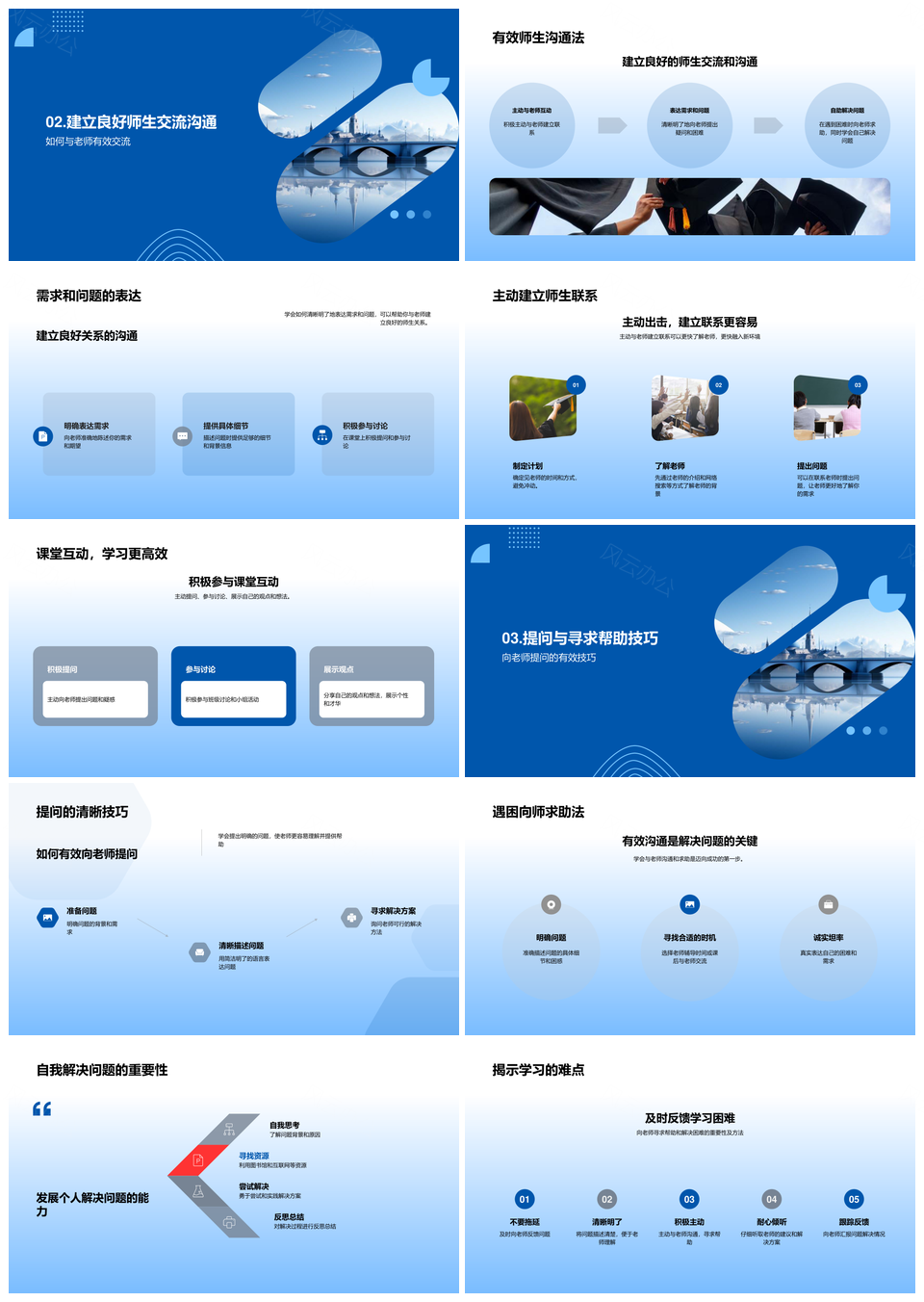 师生桥梁构建班主任任课老师促沟通助成长提问解决PPT模板推荐