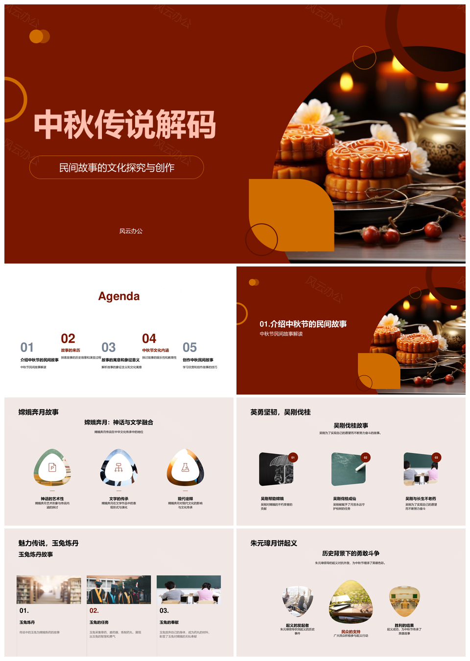 中秋传说嫦娥吴刚玉兔月饼起义赏月探秘PPT模板
