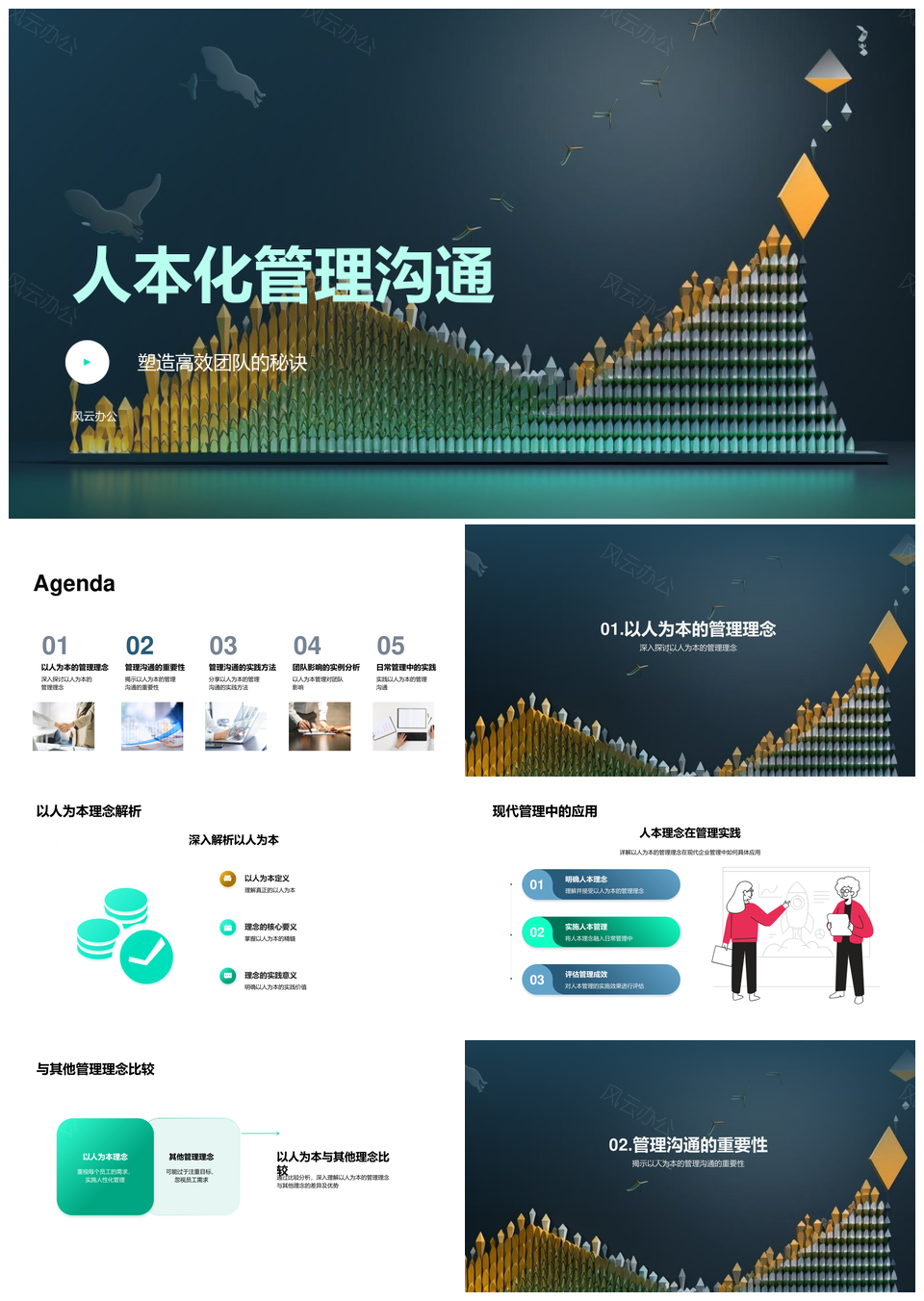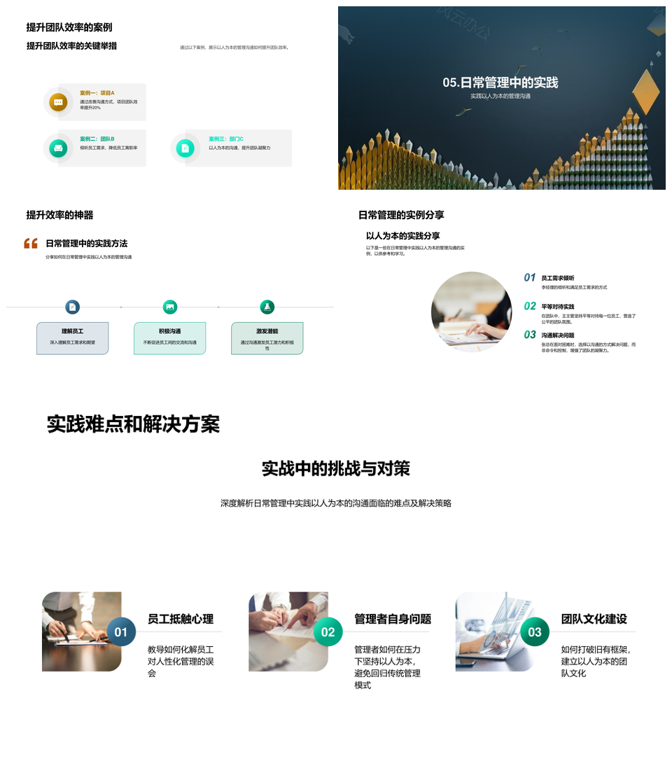 人本化管理沟通高效团队管理者商务培训中层人资行政沟通图标PPT模板推荐
