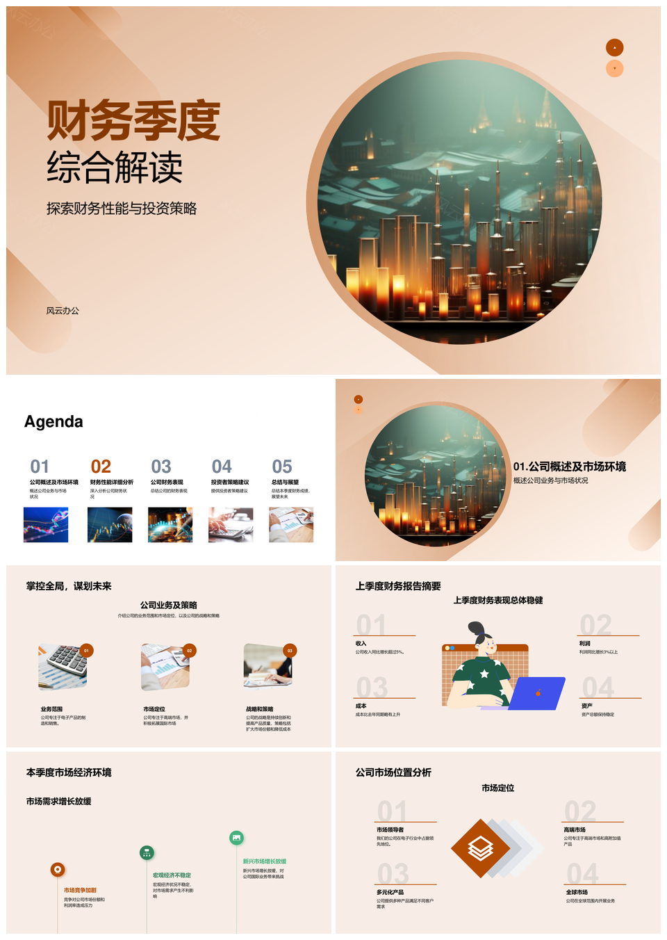 风云办公提供的财务季度投策市经变利险析调柱图PPT模板,下载格式为pptx,一共28页,作品中文字及图均可以修改和编辑,图片更改请在作品中右键图片并更换,文字修改请直接点击文字进行修改。