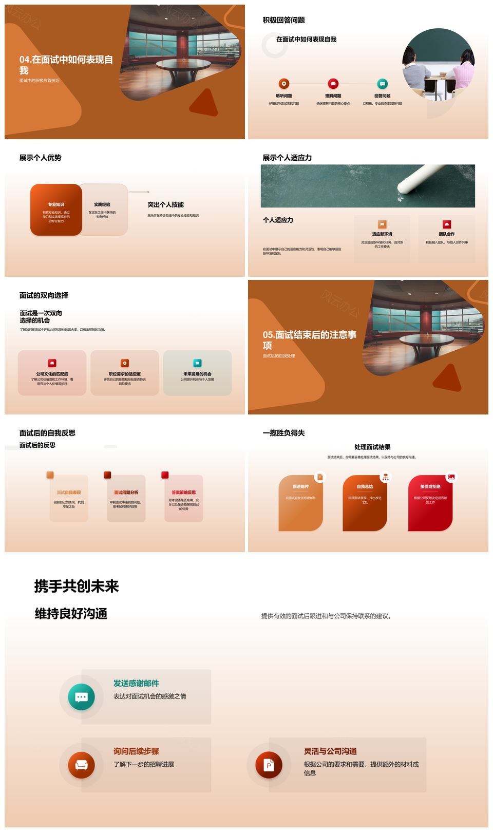 这是一张面试全攻略秘籍流程解析与备战策略展示PPT模板,包含面试、全攻略、秘籍、流程、解析、备战、策略、展示等主题内容,也可用作面试全攻略秘籍流程解析、全攻略秘籍流程解析备战策略、秘籍流程解析备战策略展示、面试全攻略流程解析备战策略、面试全攻略秘籍、全攻略秘籍流程解析、秘籍流程解析备战策略、流程解析备战策略展示、面试全攻略流程解析、全攻略流程解析备战策略、面试流程解析备战策略、全攻略秘籍备战策略、面试全攻略、流程解析备战策略、备战策略展示等PPT场景使用。 风云办公提供的面试全攻略秘籍流程解析与备战策略展示PPT模板,下载格式为pptx,一共27页,作品中文字及图均可以修改和编辑,图片更改请在作品中右键图片并更换,文字修改请直接点击文字进行修改。