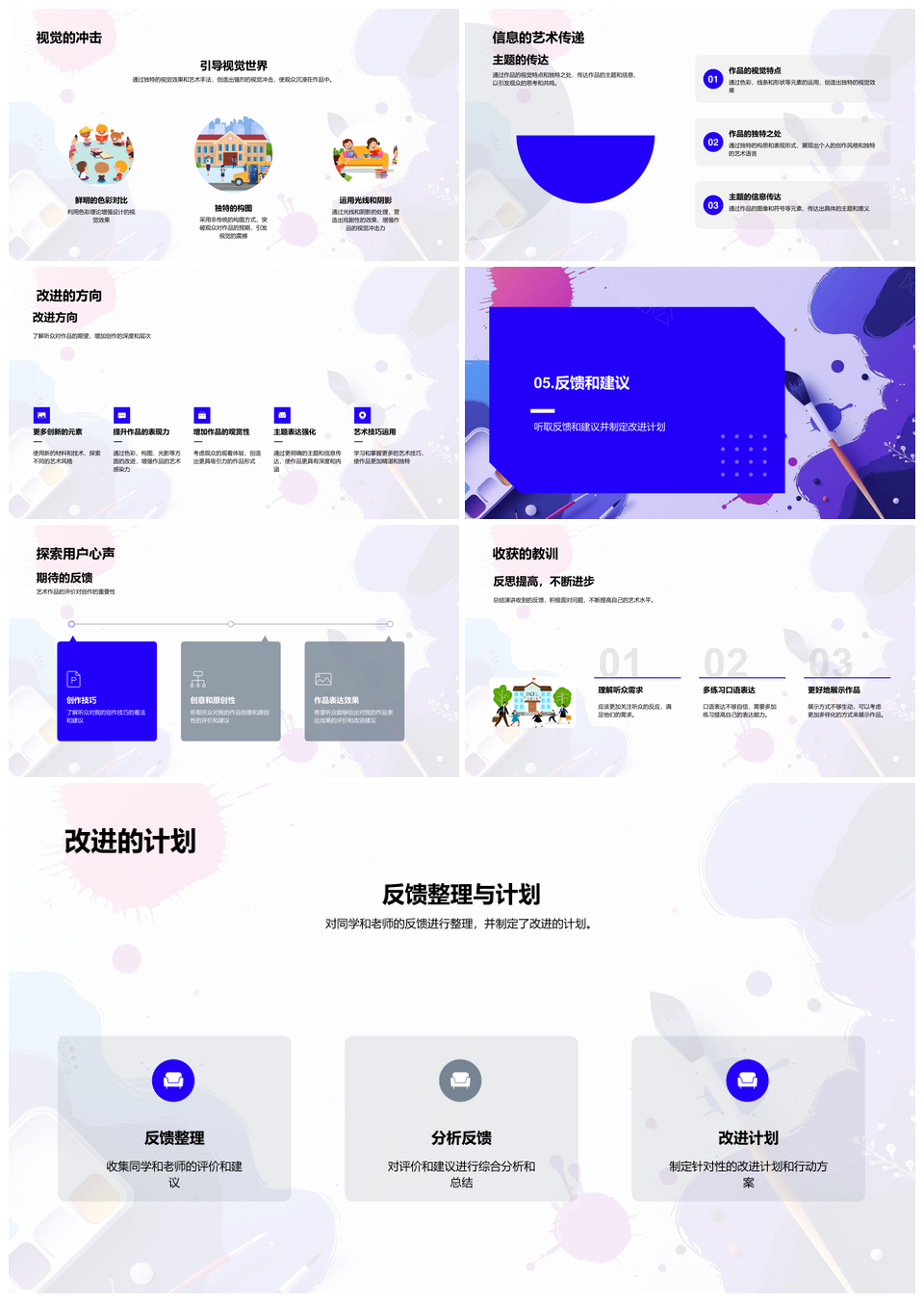 艺术答辩作品创作背景灵感过程工具材料评价视觉信息PPT模板推荐