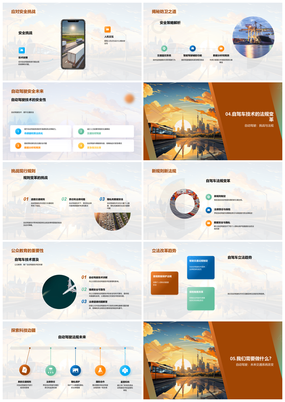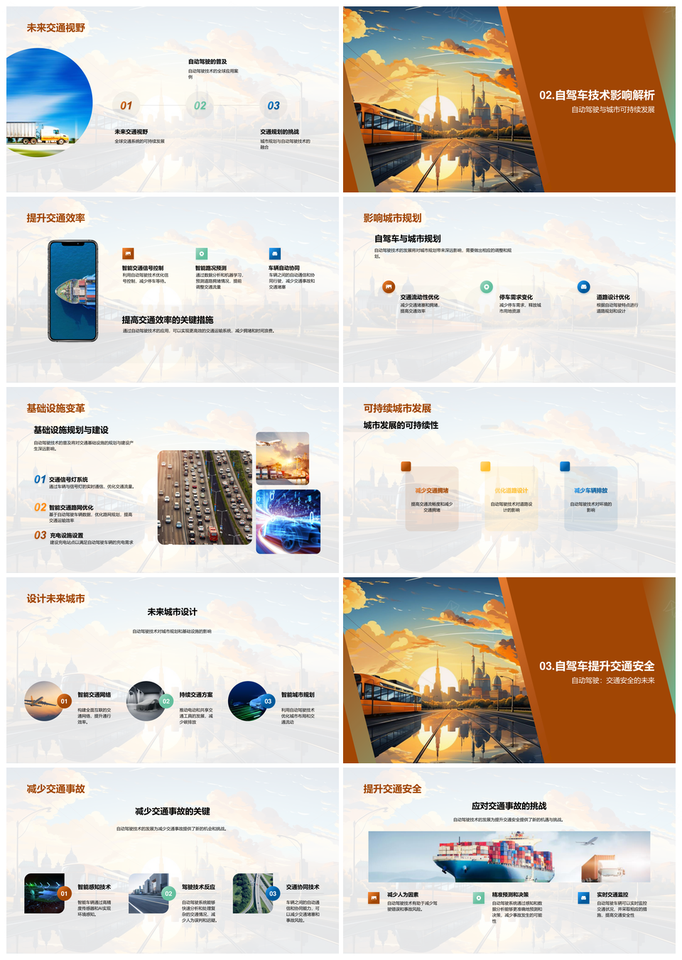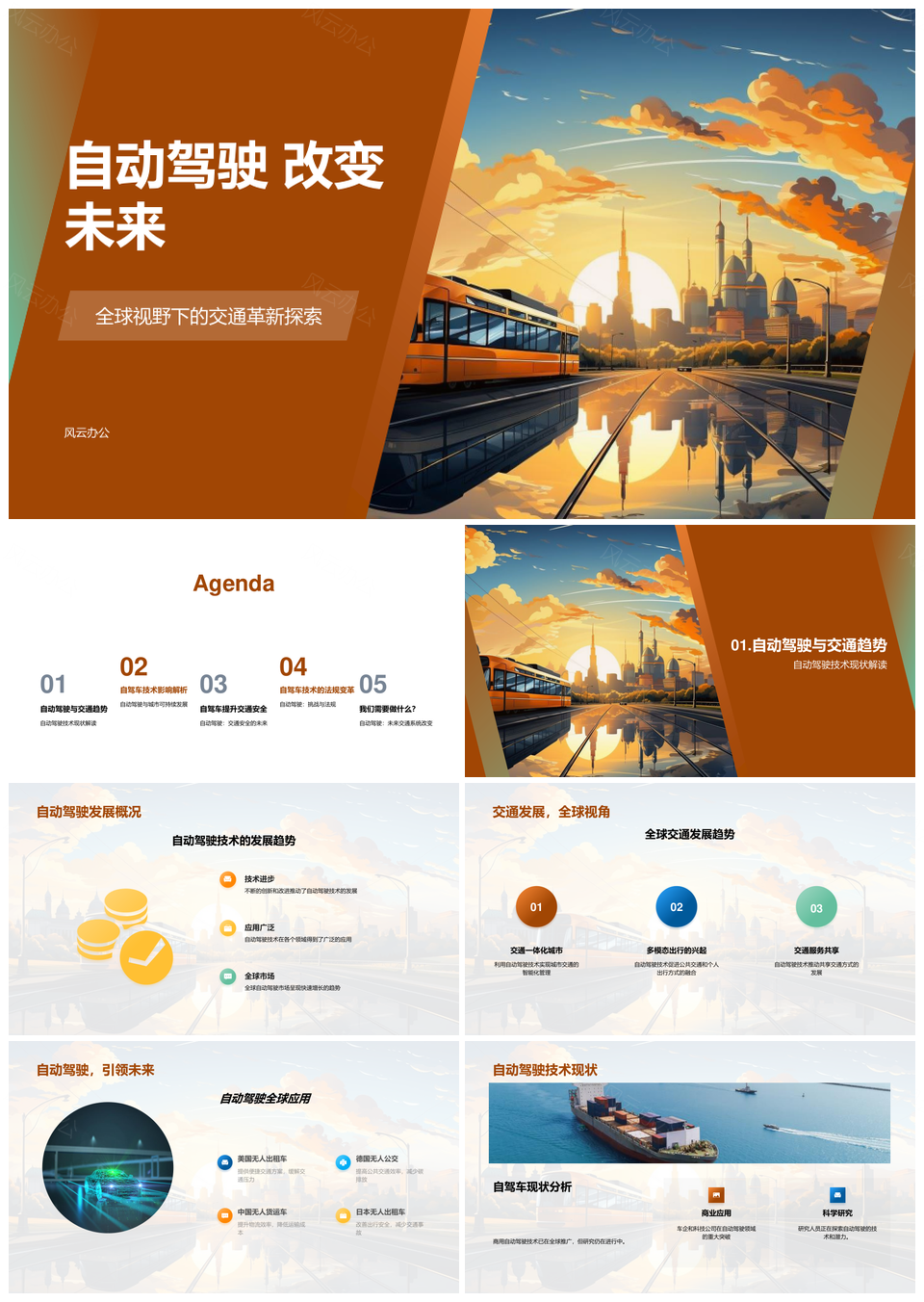 风云办公提供的自动驾驶革新全球交通趋势与城市规划PPT模板,下载格式为pptx,一共33页,作品中文字及图均可以修改和编辑,图片更改请在作品中右键图片并更换,文字修改请直接点击文字进行修改。