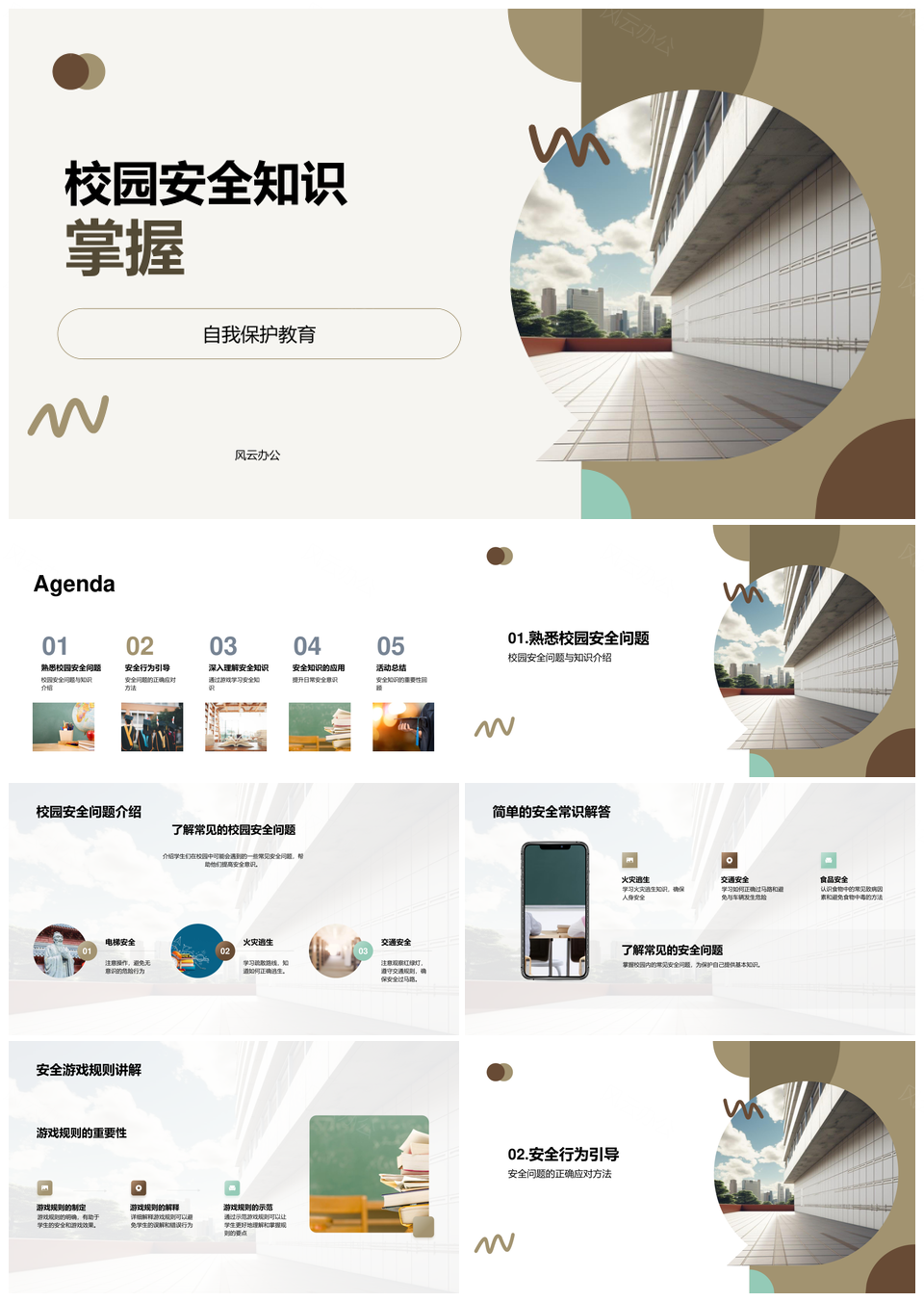 风云办公提供的校园安全自护教育游戏学应急常识PPT模板,下载格式为pptx,一共23页,作品中文字及图均可以修改和编辑,图片更改请在作品中右键图片并更换,文字修改请直接点击文字进行修改。