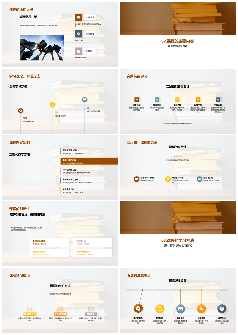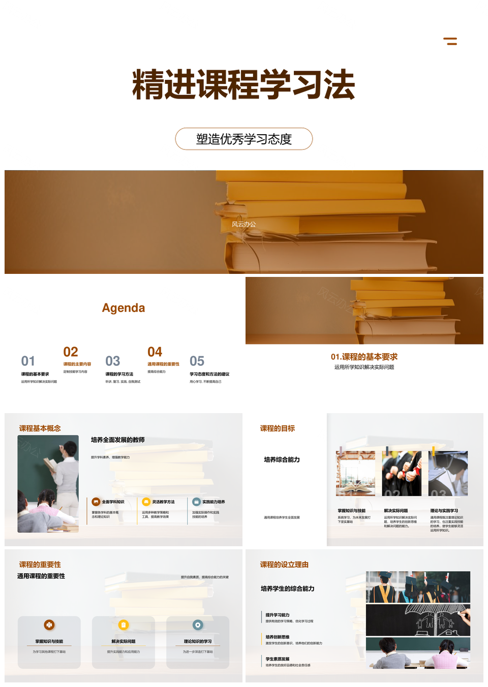 精进课程学习法优秀态度实践技能内容定制PPT模板