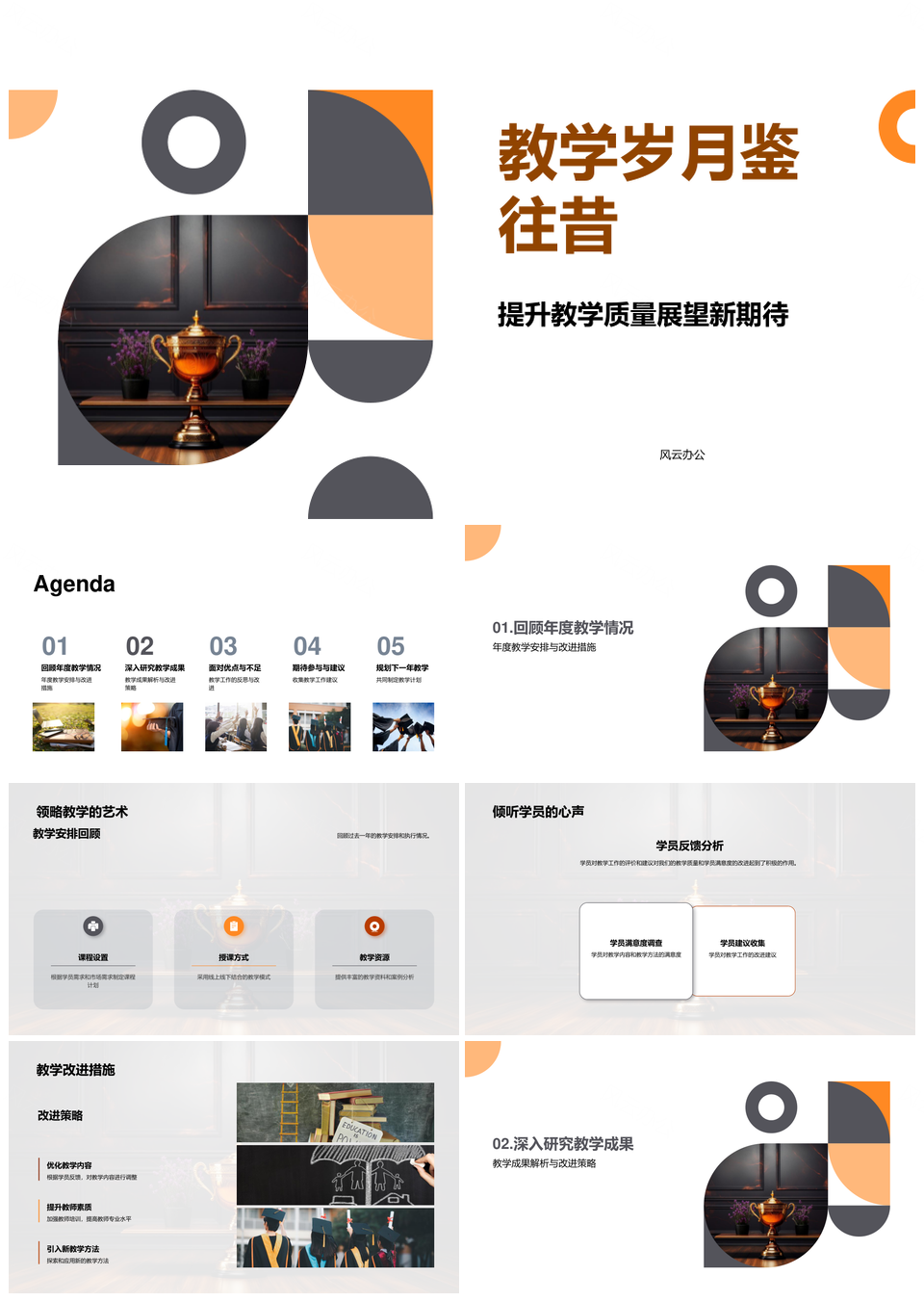 风云办公提供的教学质量学员反馈改进成果年度分析PPT模板,下载格式为pptx,一共23页,作品中文字及图均可以修改和编辑,图片更改请在作品中右键图片并更换,文字修改请直接点击文字进行修改。