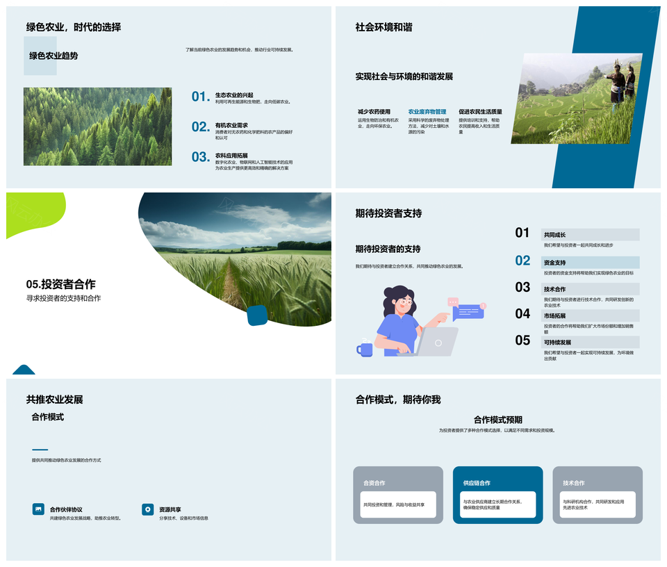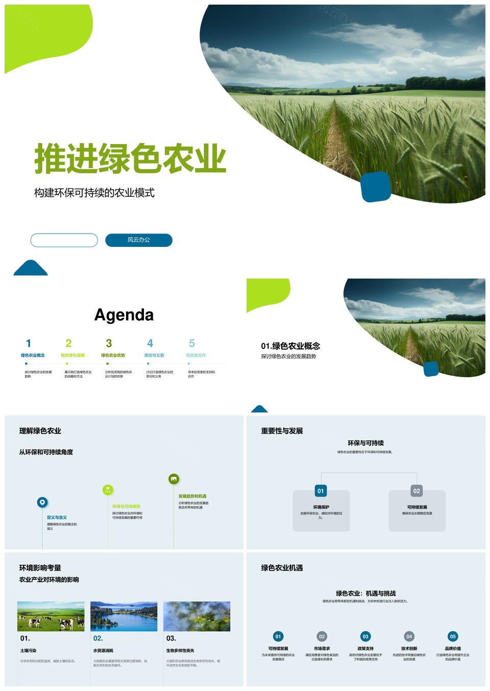 风云办公提供的绿色农业环保可持续模式提升经济效益PPT模板,下载格式为pptx,一共24页,作品中文字及图均可以修改和编辑,图片更改请在作品中右键图片并更换,文字修改请直接点击文字进行修改。