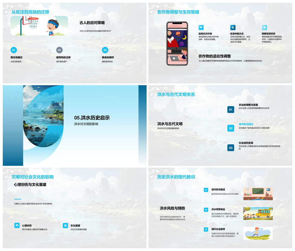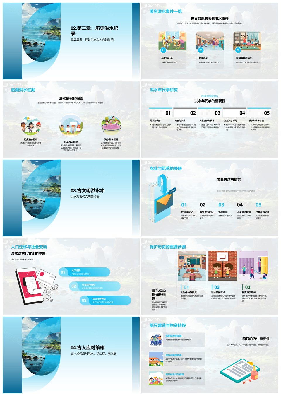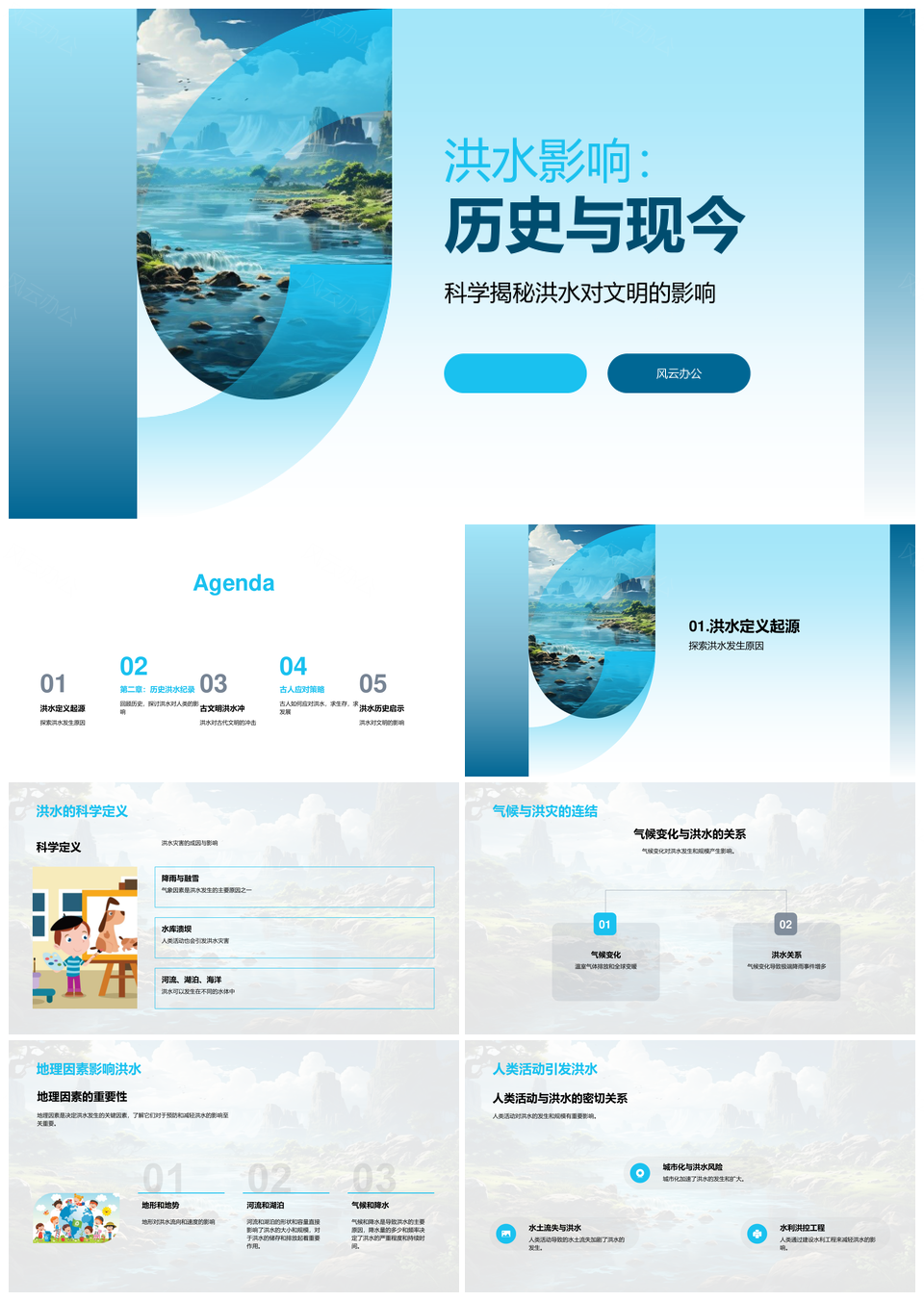 风云办公提供的古今洪水影响气候地理与人类活动演变PPT模板,下载格式为pptx,一共24页,作品中文字及图均可以修改和编辑,图片更改请在作品中右键图片并更换,文字修改请直接点击文字进行修改。