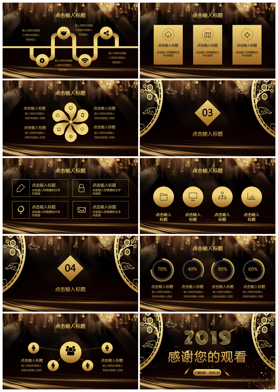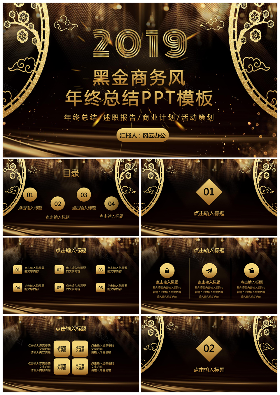 黑色黑金奢华创意商务风年终总结工作汇报PPT模板