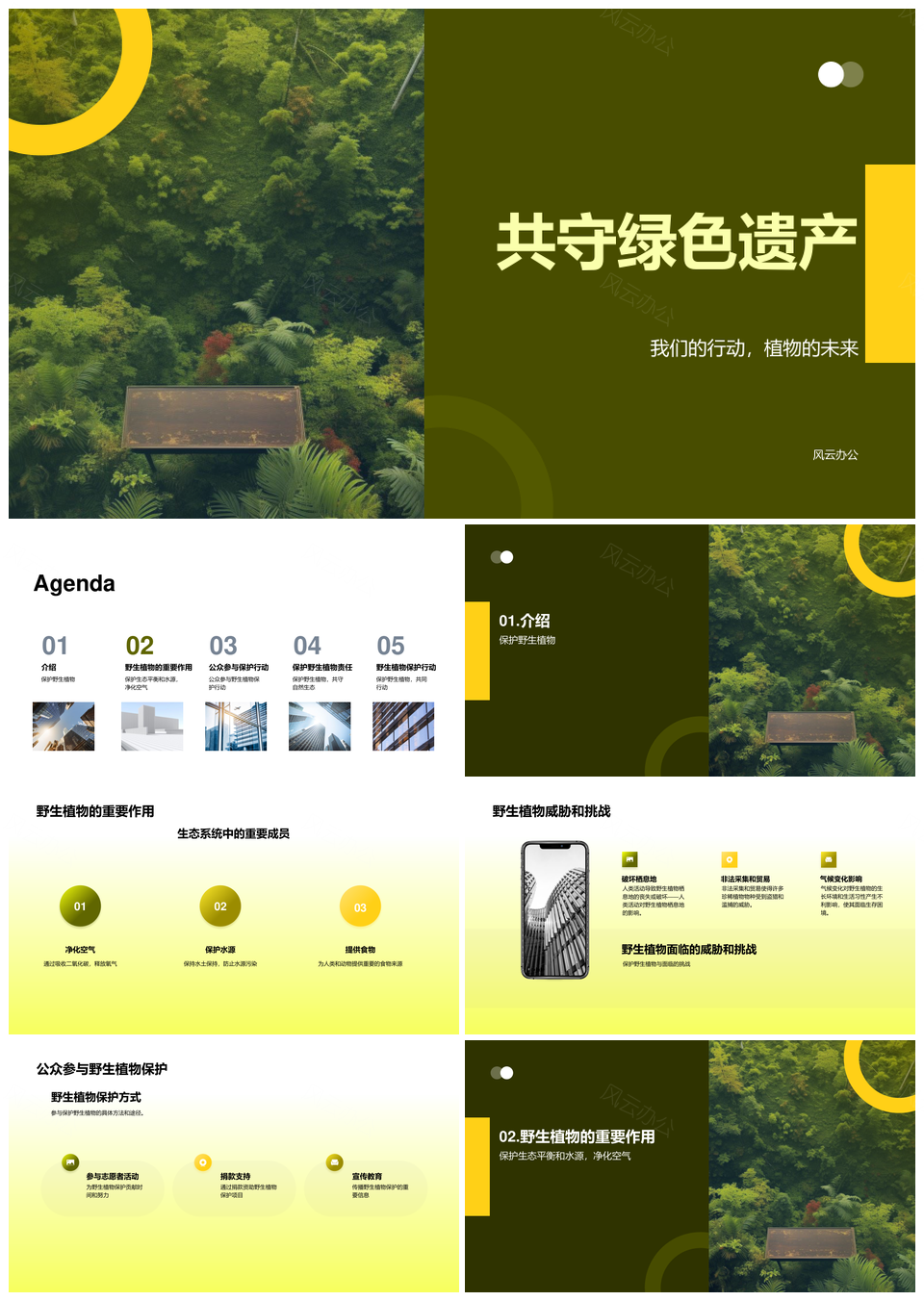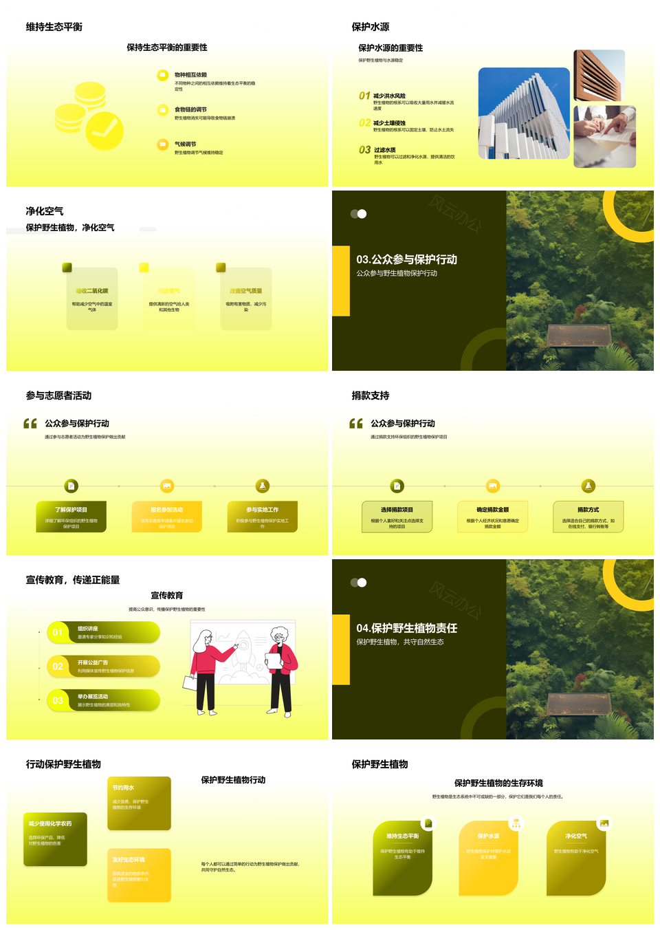 风云办公提供的守护生态水源共建野生植物绿色家园PPT模板,下载格式为pptx,一共24页,作品中文字及图均可以修改和编辑,图片更改请在作品中右键图片并更换,文字修改请直接点击文字进行修改。