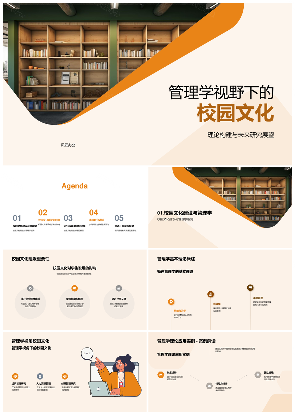 管理学视域下校园文化理论构建与建设影响成长发展PPT模板推荐