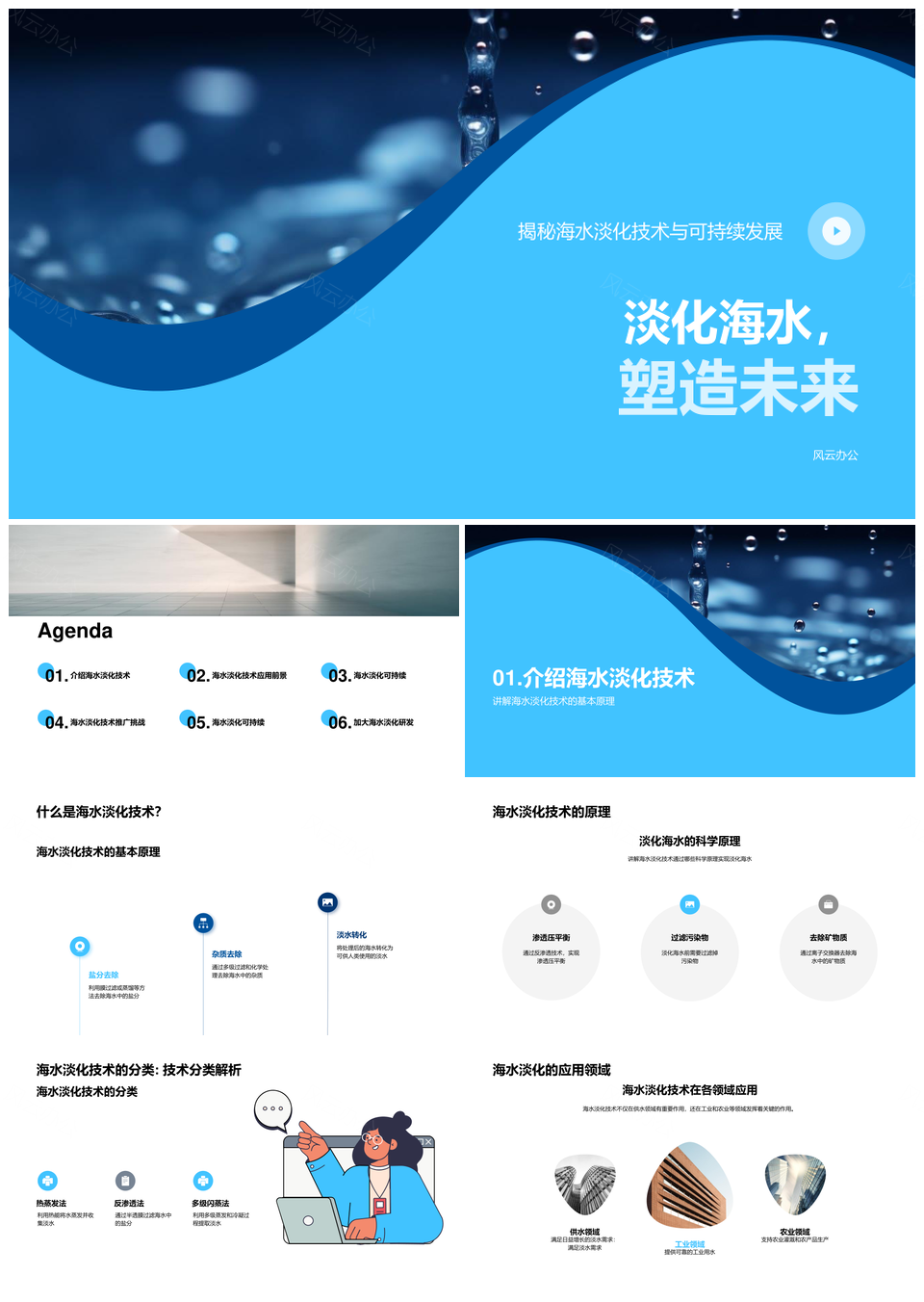 风云办公提供的海水淡化技术教育决策可持续未来PPT模板,下载格式为pptx,一共39页,作品中文字及图均可以修改和编辑,图片更改请在作品中右键图片并更换,文字修改请直接点击文字进行修改。