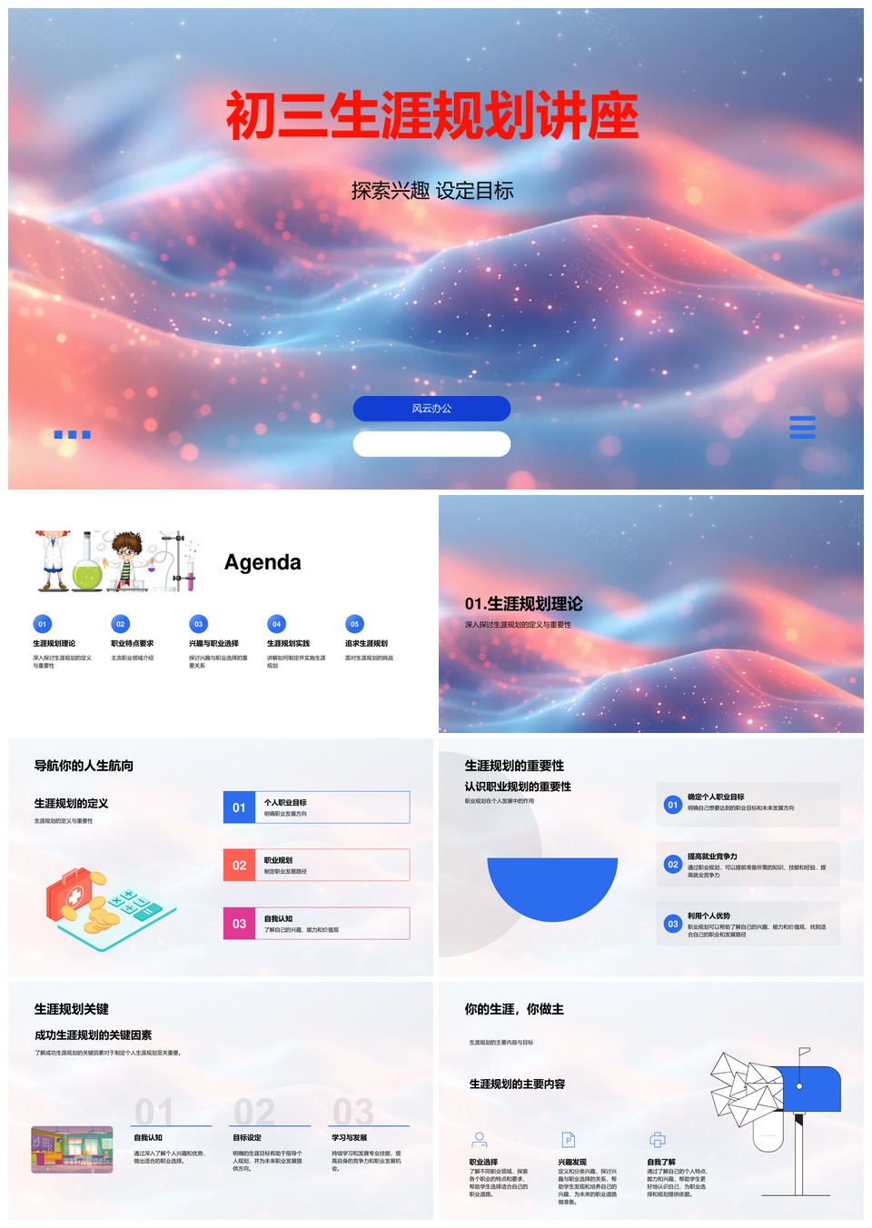 风云办公提供的初三生涯规划职业领域兴趣分类讲座PPT模板,下载格式为pptx,一共33页,作品中文字及图均可以修改和编辑,图片更改请在作品中右键图片并更换,文字修改请直接点击文字进行修改。
