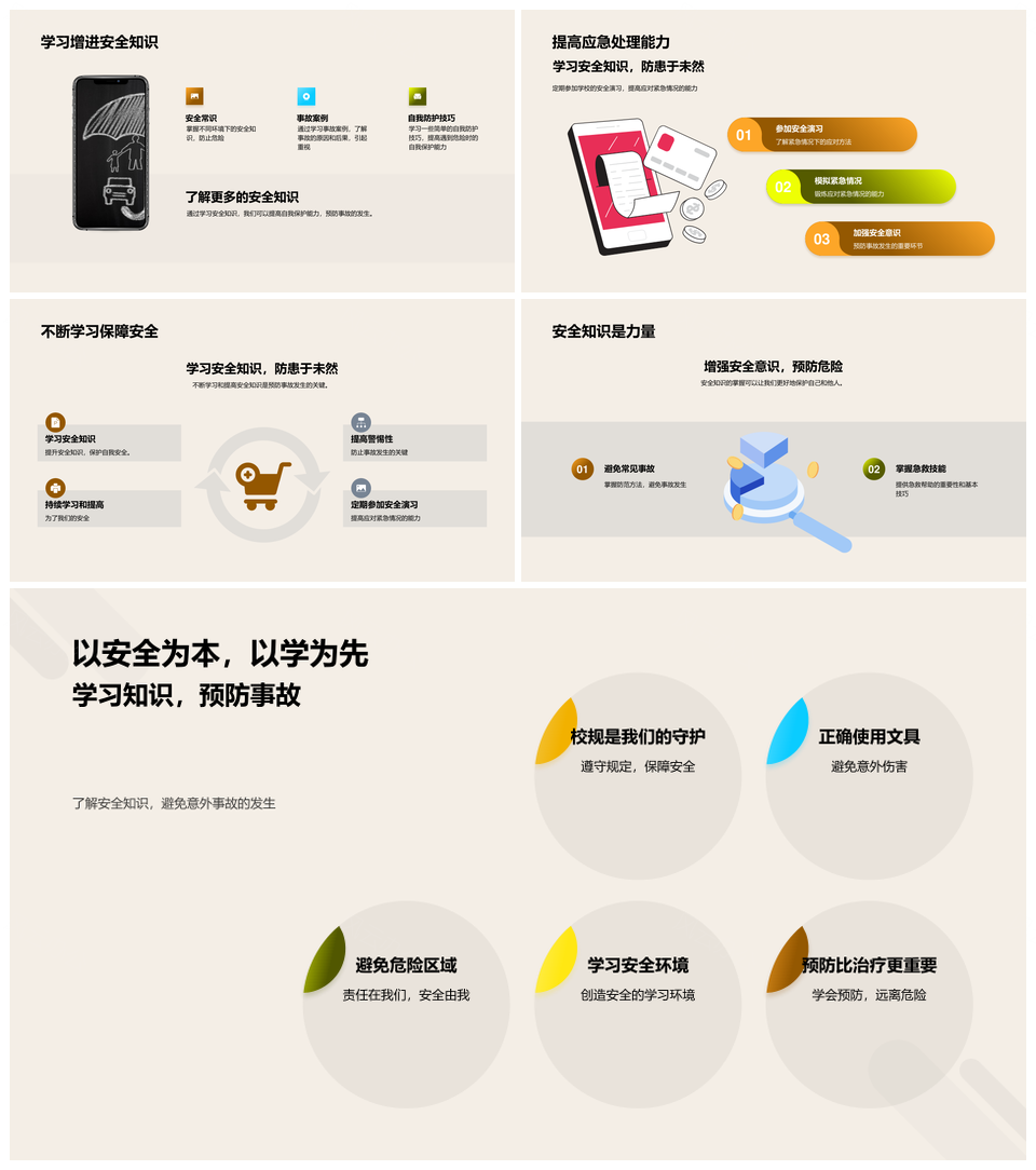 校园安全智慧防范自救守规防风险护食安建安PPT模板推荐