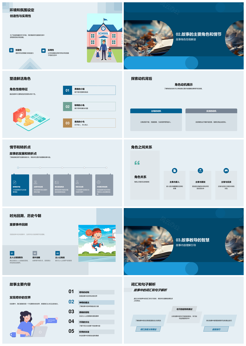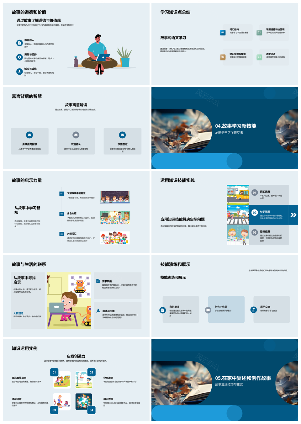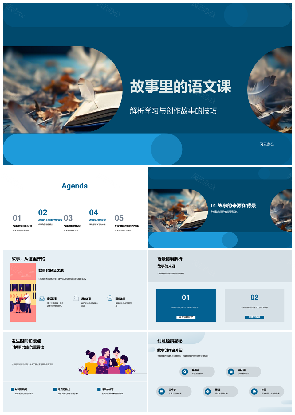 风云办公提供的故事启书小学语文课堂学习创作探源PPT模板,下载格式为pptx,一共33页,作品中文字及图均可以修改和编辑,图片更改请在作品中右键图片并更换,文字修改请直接点击文字进行修改。
