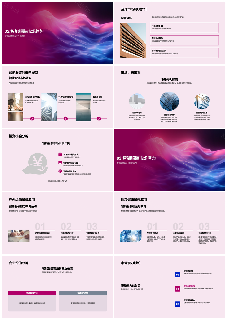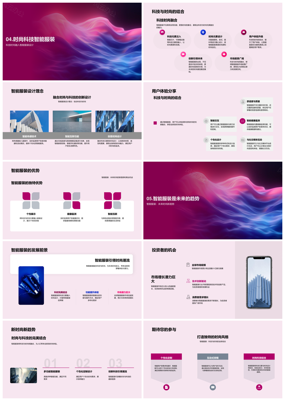 风云办公提供的智能服装科技时尚市场趋势解析PPT模板,下载格式为pptx,一共28页,作品中文字及图均可以修改和编辑,图片更改请在作品中右键图片并更换,文字修改请直接点击文字进行修改。