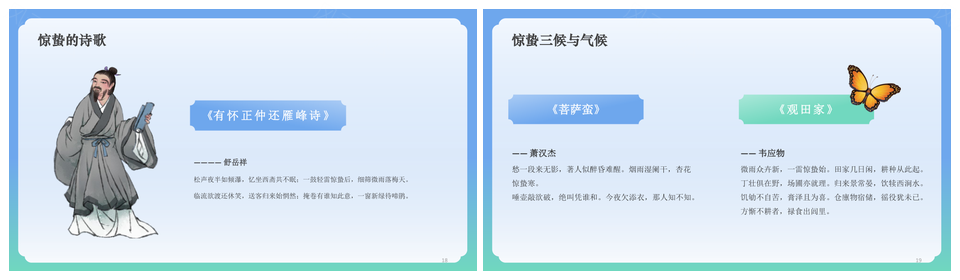 这是一张惊蛰春雷雨水阳气升万物萌发文化传承PPT模板,包含惊蛰、春雷、雨水、阳气、万物、萌发、文化、传承等主题内容,也可用作惊蛰春雷万物萌发、春雷雨水文化传承、万物萌发文化传承、雨水阳气万物萌发、惊蛰春雷雨水、春雷雨水阳气、阳气万物萌发、雨水万物萌发、惊蛰春雷、春雷雨水、雨水阳气、阳气万物、万物萌发、萌发文化、文化传承等PPT场景使用。