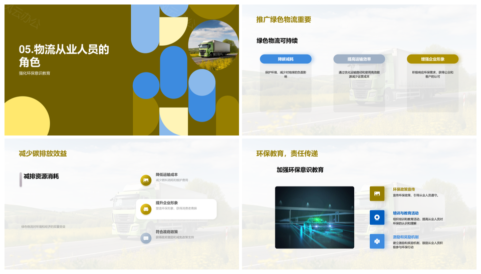 风云办公提供的绿色物流低碳运输推进可持续发展PPT模板,下载格式为pptx,一共22页,作品中文字及图均可以修改和编辑,图片更改请在作品中右键图片并更换,文字修改请直接点击文字进行修改。