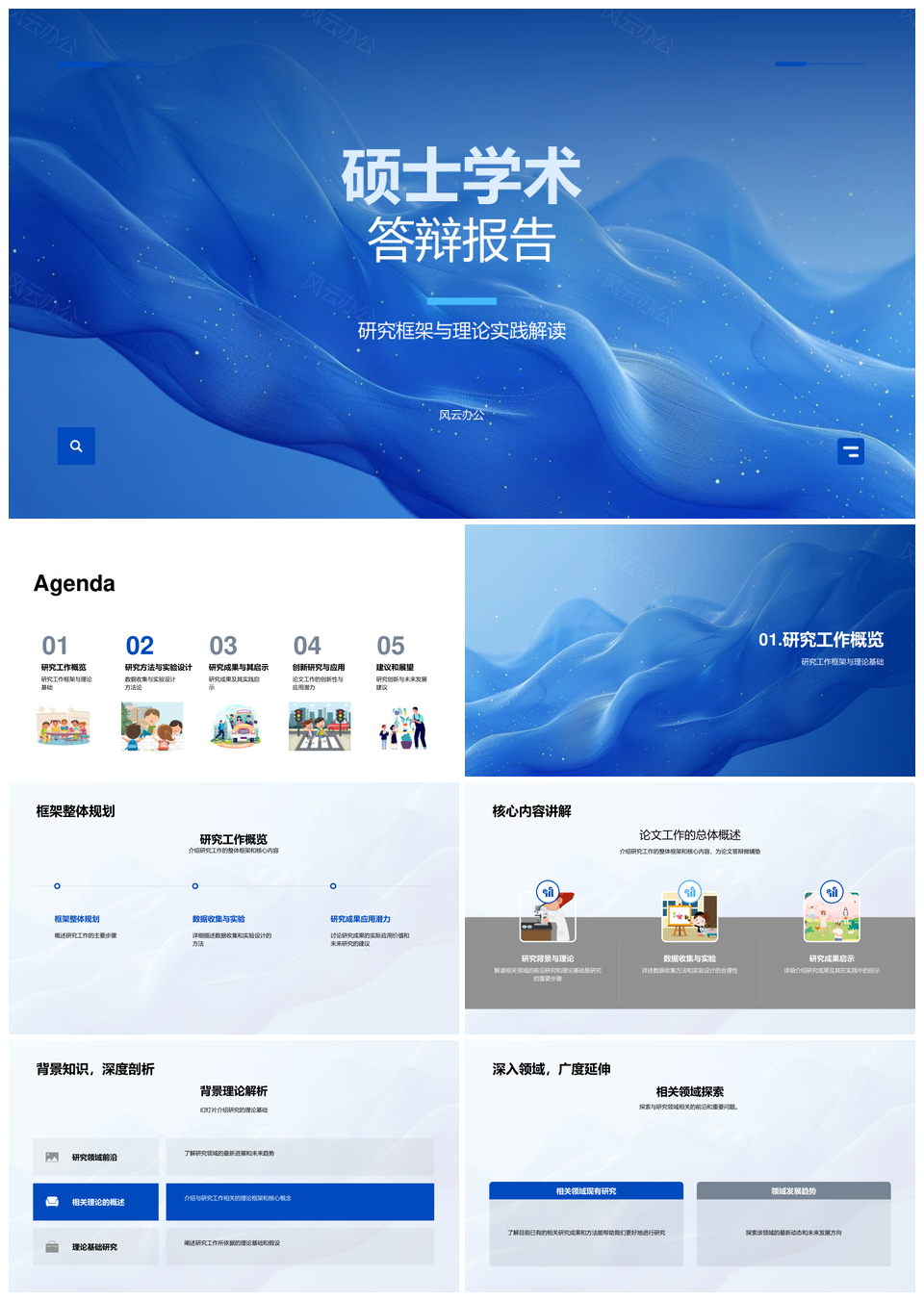 这是一张硕士答辩研究框架理论实践方法成果创新应用PPT模板,包含硕士答辩、研究框架、理论、实践、方法、成果、创新、应用等主题内容,也可用作硕士答辩研究框架、研究框架理论实践、理论实践方法成果、实践方法成果创新、方法成果创新应用、硕士答辩研究、答辩研究框架、研究框架理论、框架理论实践、理论实践方法、实践方法成果、方法成果创新、成果创新应用、硕士答辩、理论实践等PPT场景使用。 风云办公提供的硕士答辩研究框架理论实践方法成果创新应用PPT模板,下载格式为pptx,一共28页,作品中文字及图均可以修改和编辑,图片更改请在作品中右键图片并更换,文字修改请直接点击文字进行修改。