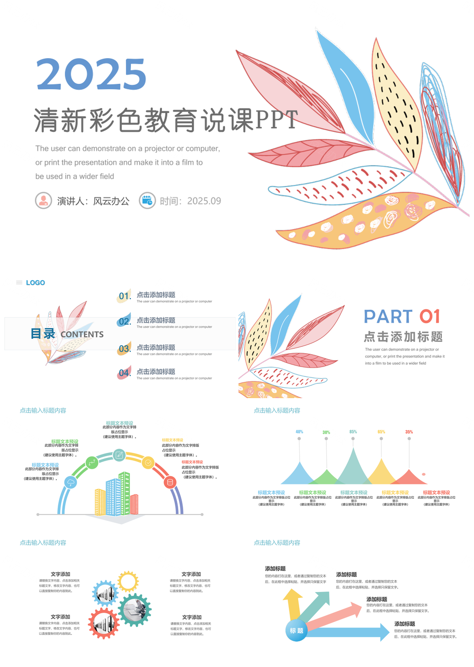 这是一张2025清新彩色教育说课PPT模板,包含2025、清新、彩色、教育、说课等主题内容,也可用作2025、清新、彩色、教育、说课