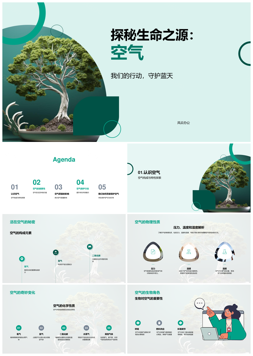 风云办公提供的守护蓝天探秘空气构成与生命之源PPT模板,下载格式为pptx,一共25页,作品中文字及图均可以修改和编辑,图片更改请在作品中右键图片并更换,文字修改请直接点击文字进行修改。