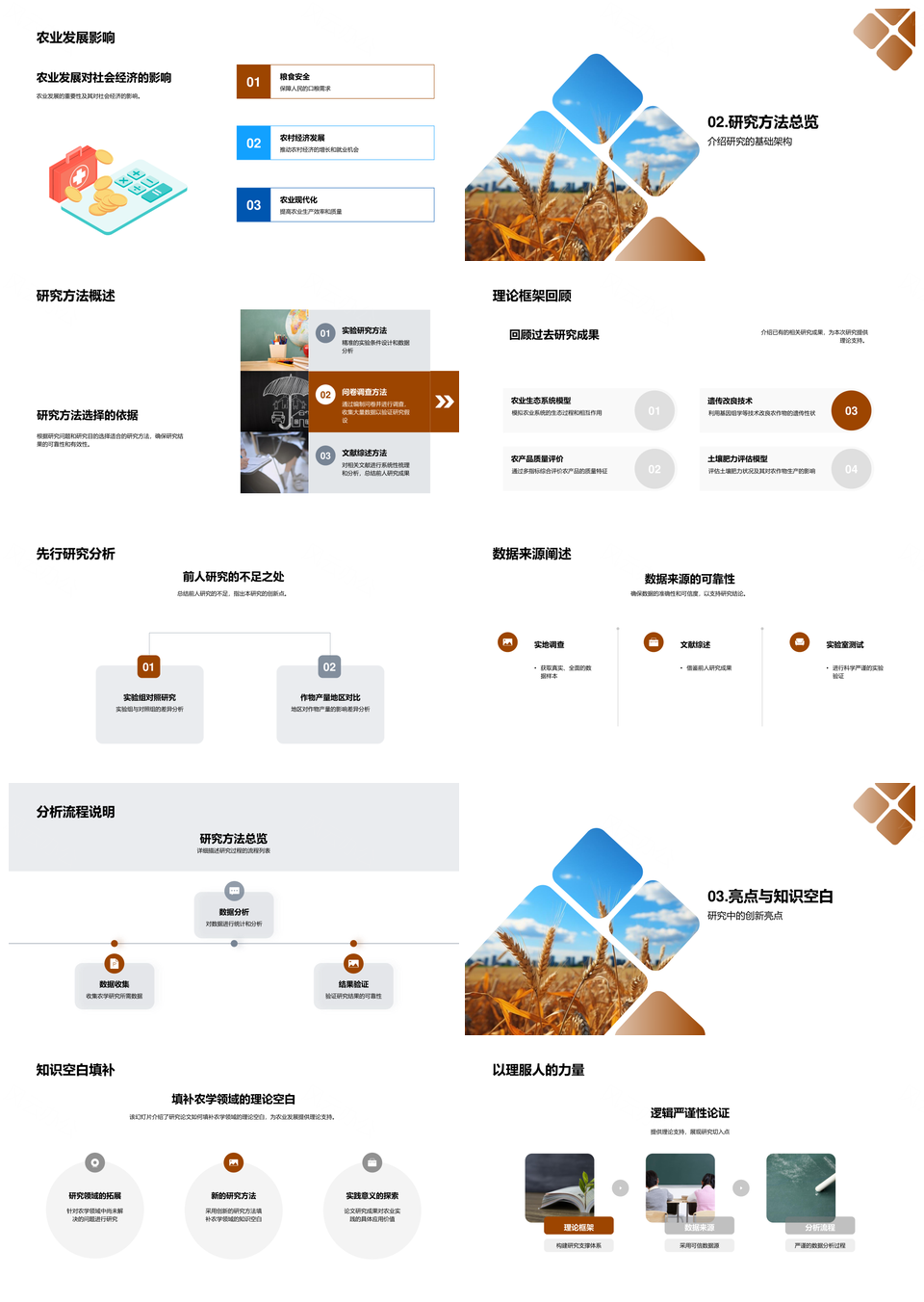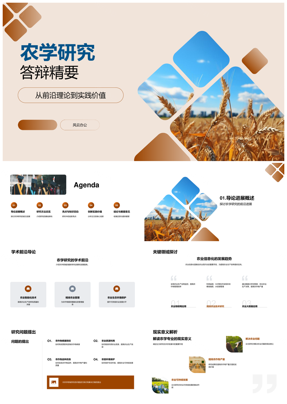 风云办公提供的麦田农学研究答辩前沿理论与方法实践PPT模板,下载格式为pptx,一共33页,作品中文字及图均可以修改和编辑,图片更改请在作品中右键图片并更换,文字修改请直接点击文字进行修改。