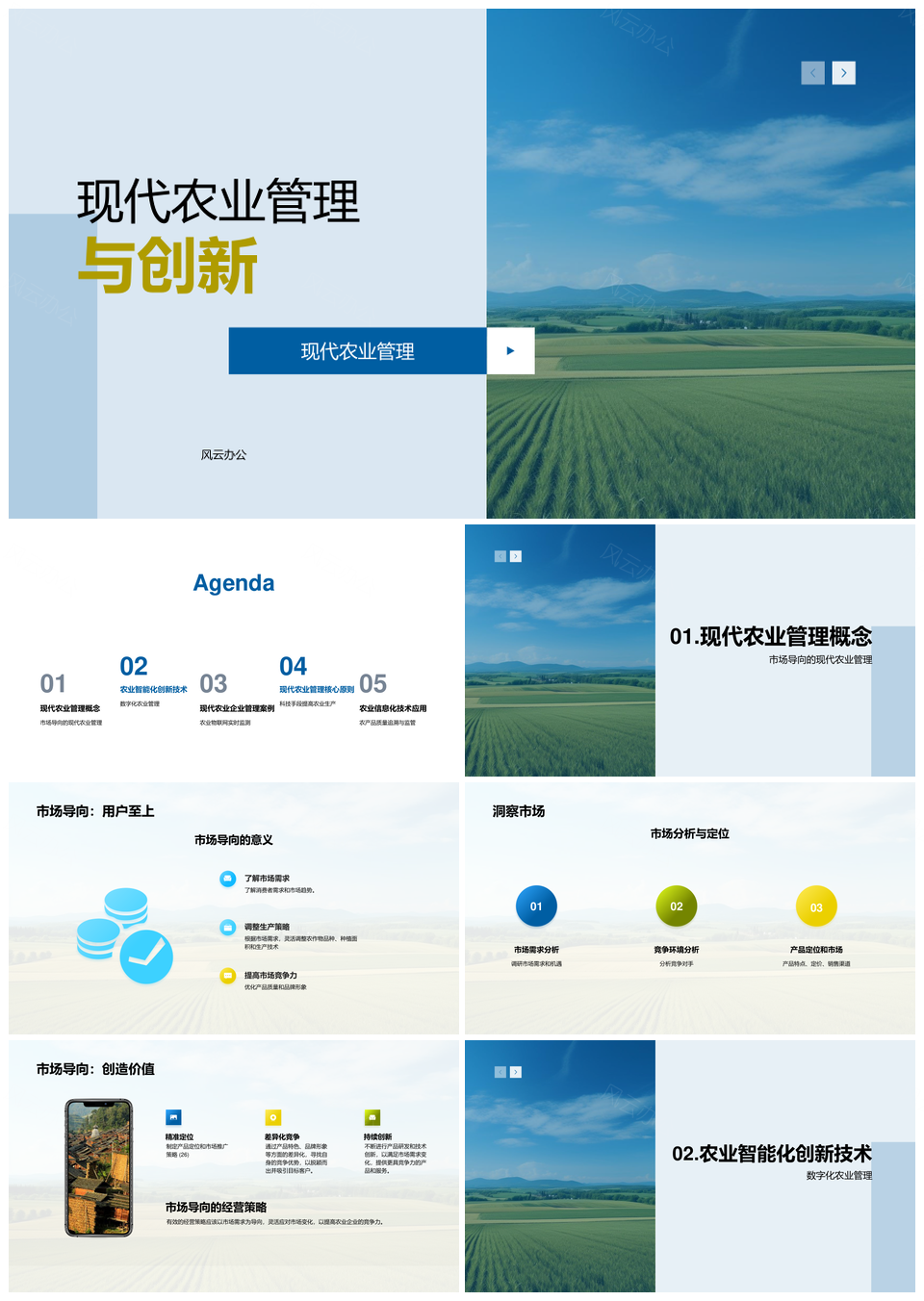 风云办公提供的创新驱动农业管理科技化数字化PPT模板,下载格式为pptx,一共23页,作品中文字及图均可以修改和编辑,图片更改请在作品中右键图片并更换,文字修改请直接点击文字进行修改。