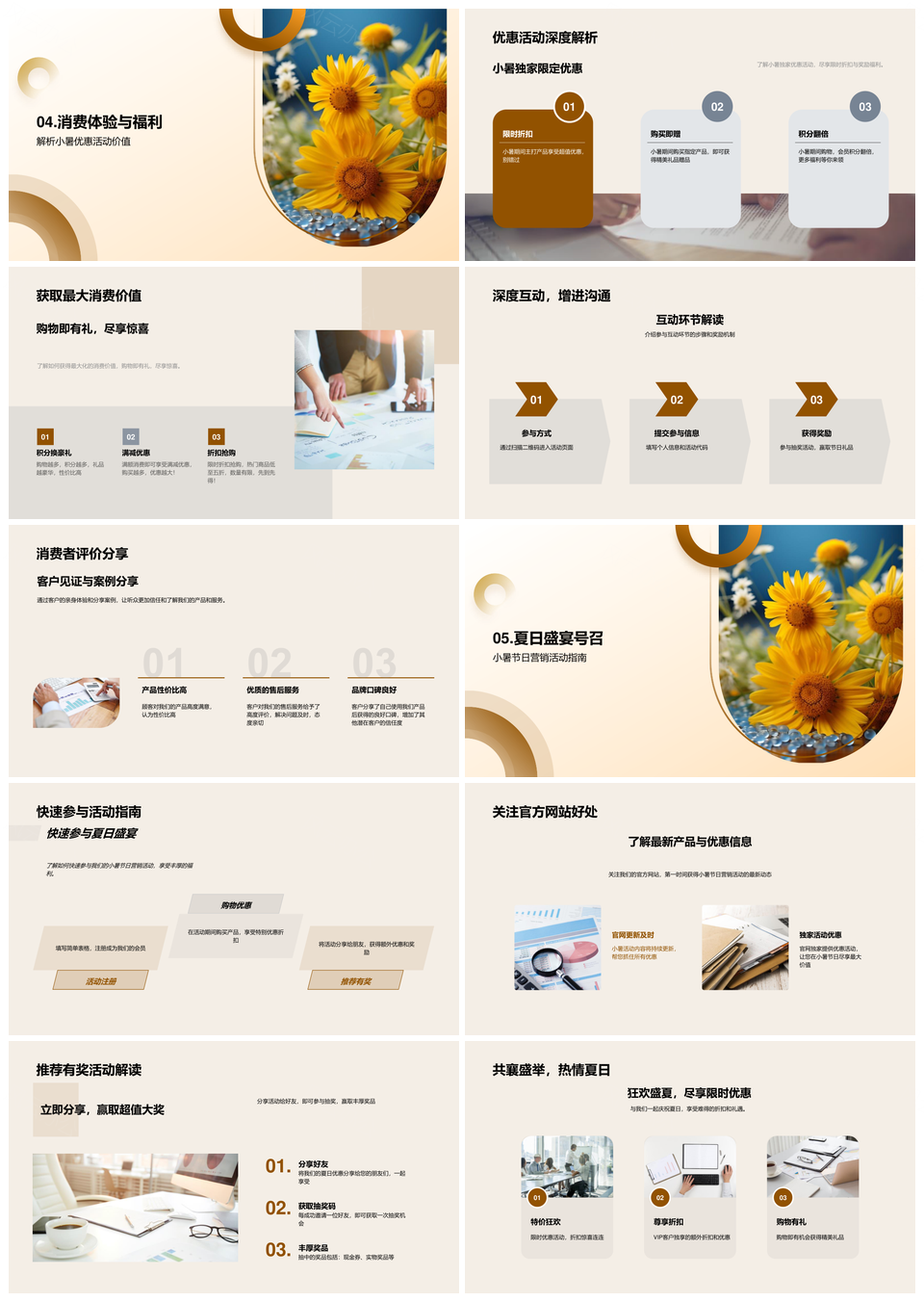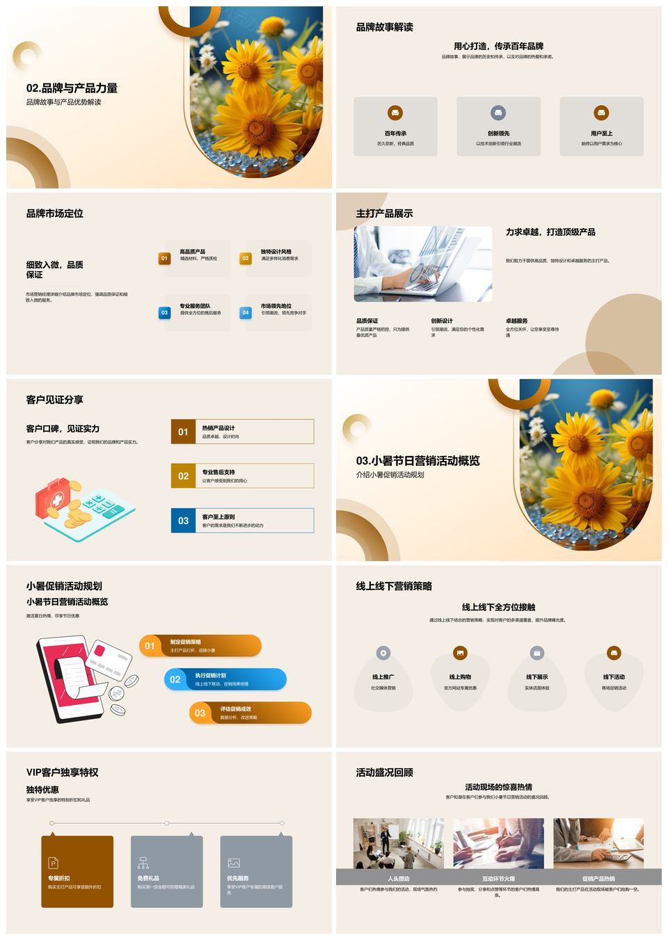 小暑节气营销品牌定位向日葵促销品质生活PPT模板推荐