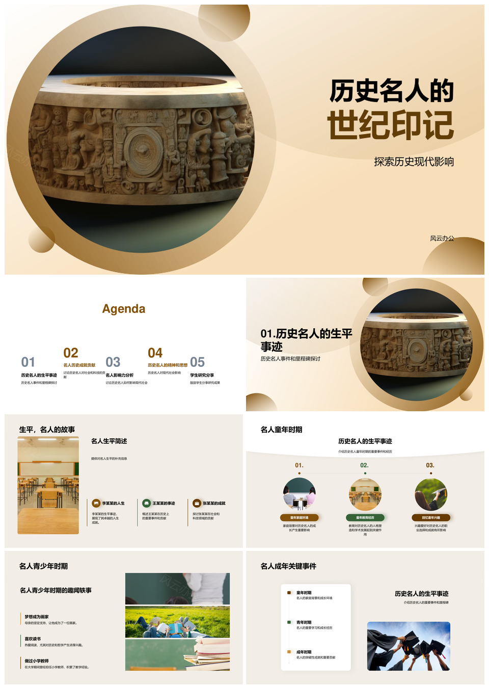 风云办公提供的历史名人世纪印记教育科技卷轴故事PPT模板,下载格式为pptx,一共30页,作品中文字及图均可以修改和编辑,图片更改请在作品中右键图片并更换,文字修改请直接点击文字进行修改。