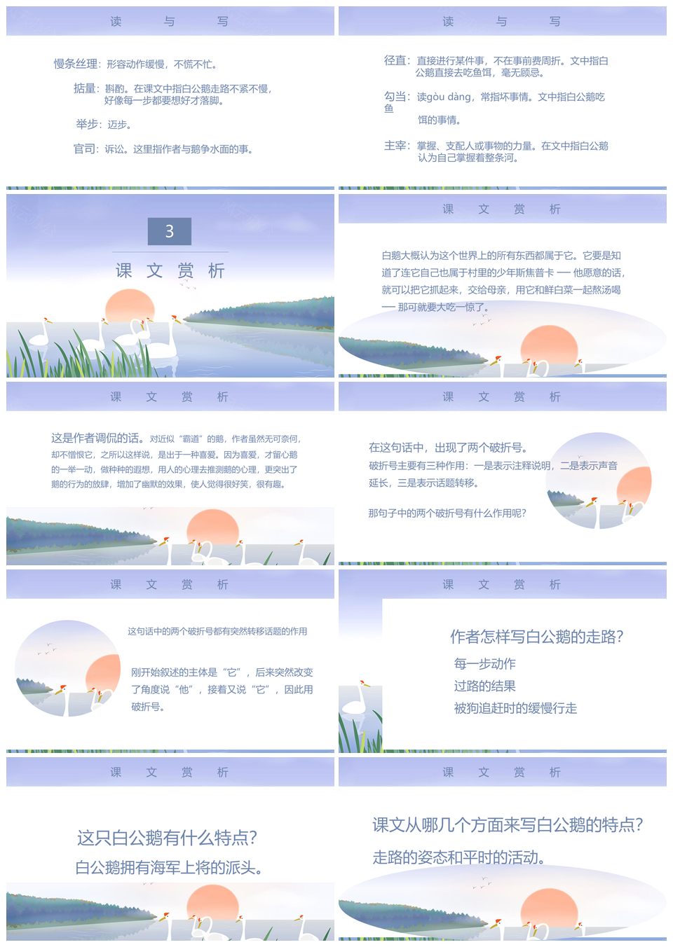 这是一张人教版小学四年级课件白公鹅PPT模板,包含人教版、小学、四年级、课件、白公鹅等主题内容,也可用作人教版、小学、四年级、课件、白公鹅