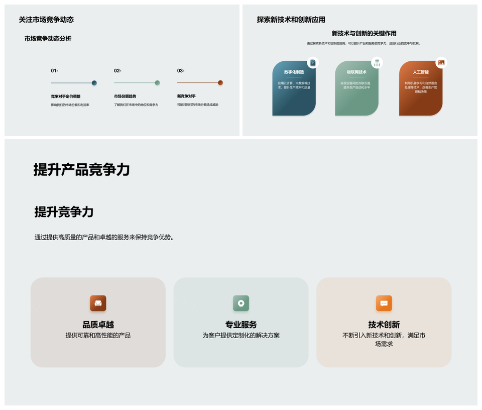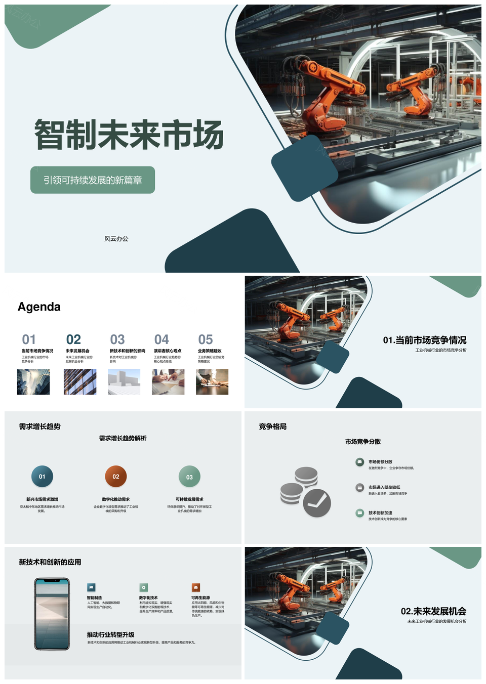 这是一张智能制造驱动工业机械创新竞逐可持续市场PPT模板,包含智能制造、驱动、工业机械、创新、竞逐、可持续、市场等主题内容,也可用作智能制造驱动工业机械、智能制造驱动工业创新、智能制造工业机械创新、驱动工业机械创新竞逐、工业机械创新竞逐可持续、机械创新竞逐可持续市场、智能制造驱动工业、制造驱动工业机械、驱动工业机械创新、工业机械创新竞逐、机械创新竞逐可持续、创新竞逐可持续市场、智能制造、工业机械、可持续市场等PPT场景使用。 风云办公提供的智能制造驱动工业机械创新竞逐可持续市场PPT模板,下载格式为pptx,一共21页,作品中文字及图均可以修改和编辑,图片更改请在作品中右键图片并更换,文字修改请直接点击文字进行修改。