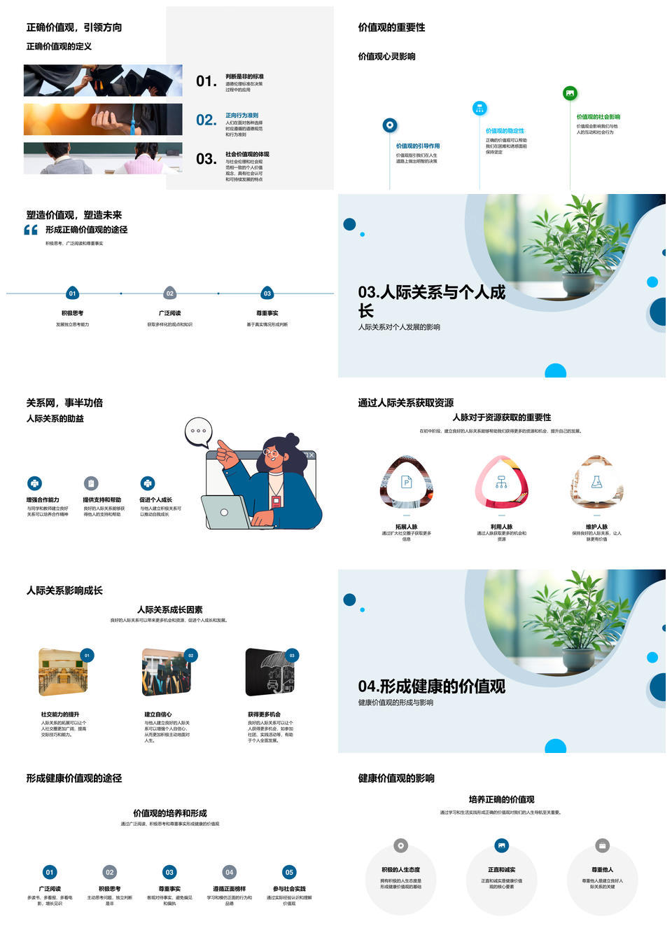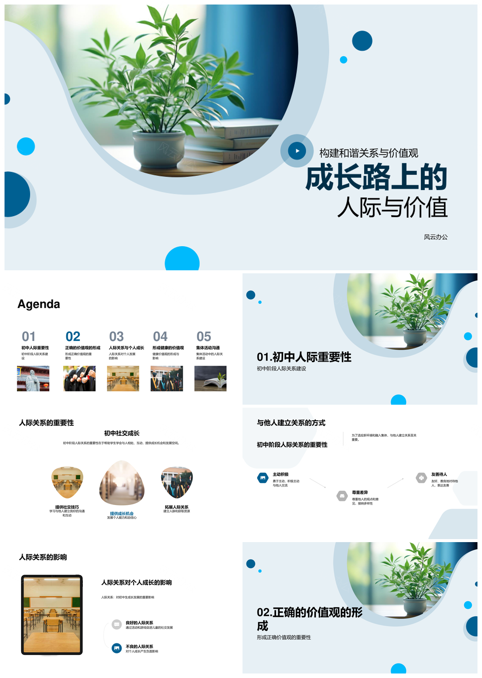 风云办公提供的初中生人际价值观成长教育活动PPT模板,下载格式为pptx,一共23页,作品中文字及图均可以修改和编辑,图片更改请在作品中右键图片并更换,文字修改请直接点击文字进行修改。