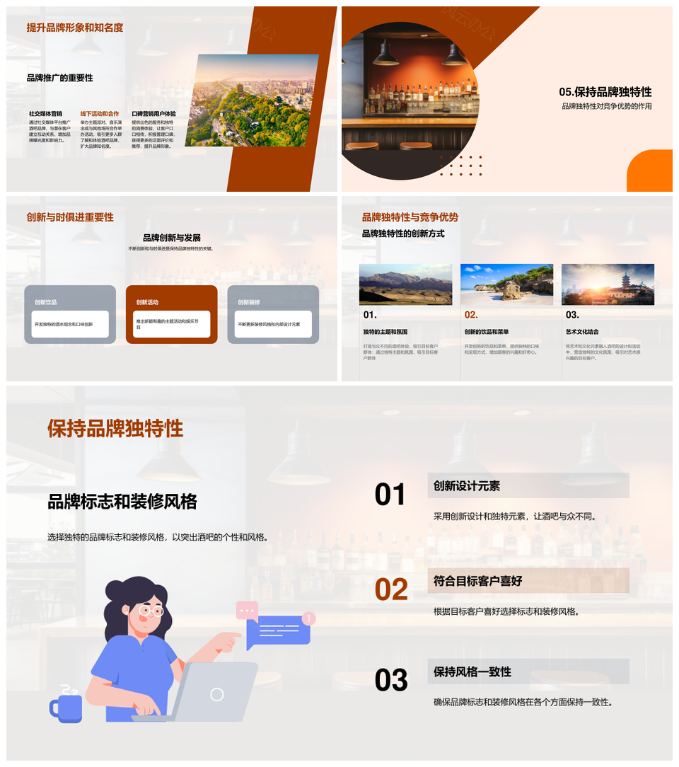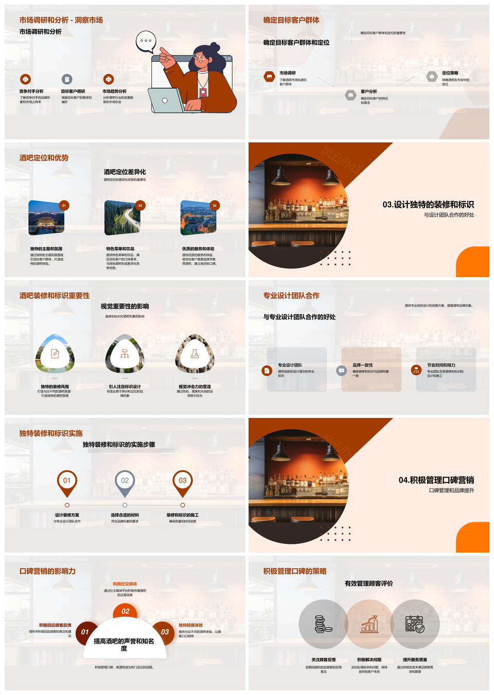 这是一张酒吧品牌营销竞争突围市场调研定位客群PPT模板,包含酒吧、品牌、营销、竞争、突围、市场、调研、定位、客群等主题内容,也可用作酒吧品牌营销竞争、品牌营销竞争突围、营销竞争突围市场调研、竞争突围市场调研定位、突围市场调研定位客群、酒吧品牌营销、品牌营销竞争、营销竞争突围、竞争突围市场调研、突围市场调研定位、市场调研定位客群、酒吧品牌、品牌营销、营销竞争、竞争突围等PPT场景使用。 风云办公提供的酒吧品牌营销竞争突围市场调研定位客群PPT模板,下载格式为pptx,一共23页,作品中文字及图均可以修改和编辑,图片更改请在作品中右键图片并更换,文字修改请直接点击文字进行修改。