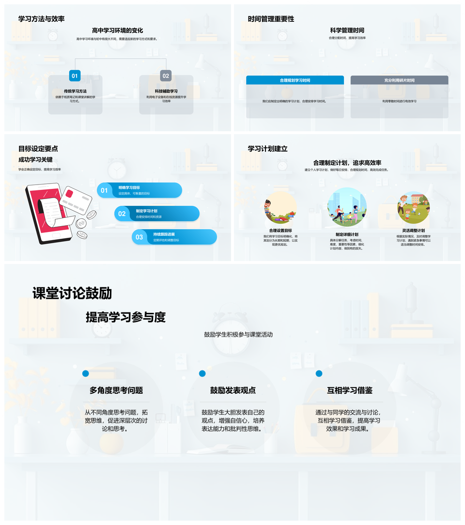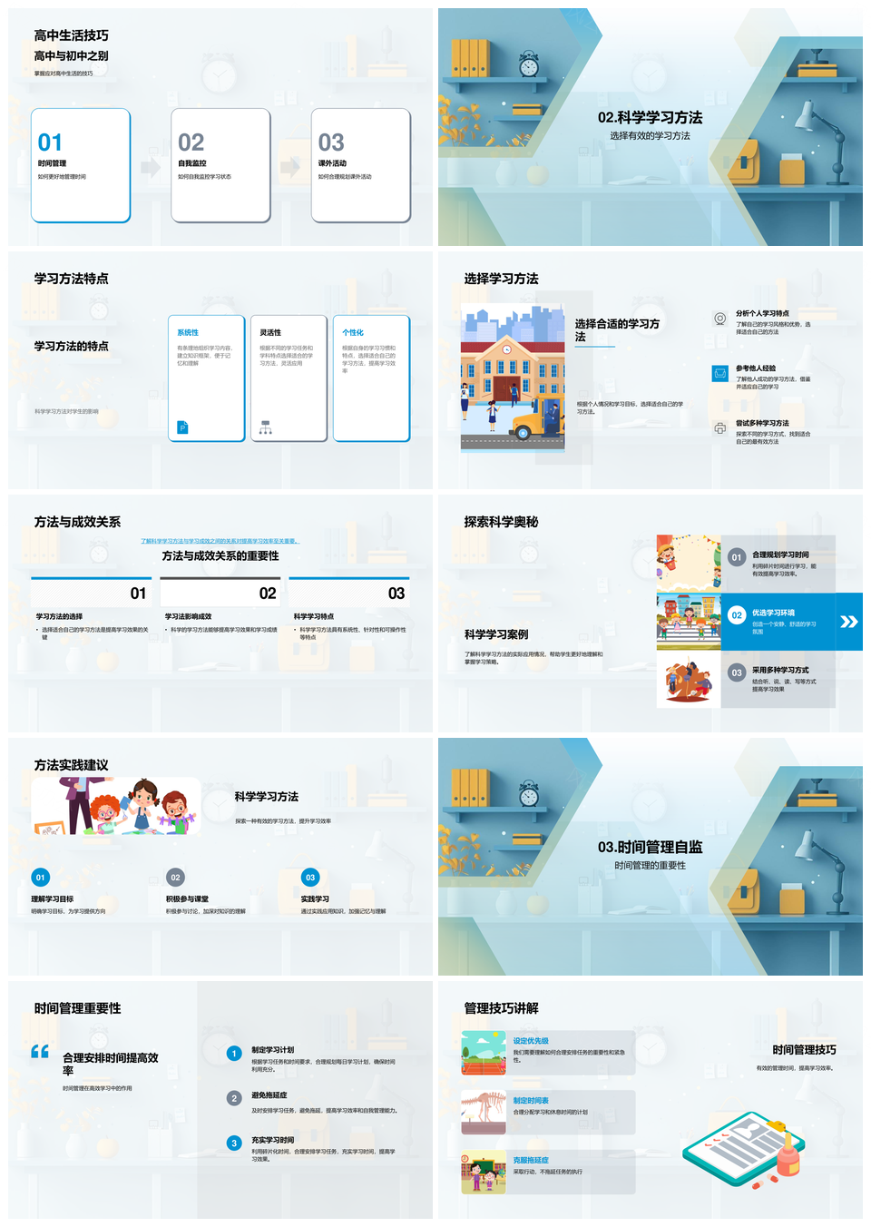 高一学习技巧高效方法课程特点时间管理复习策略规划PPT模板推荐